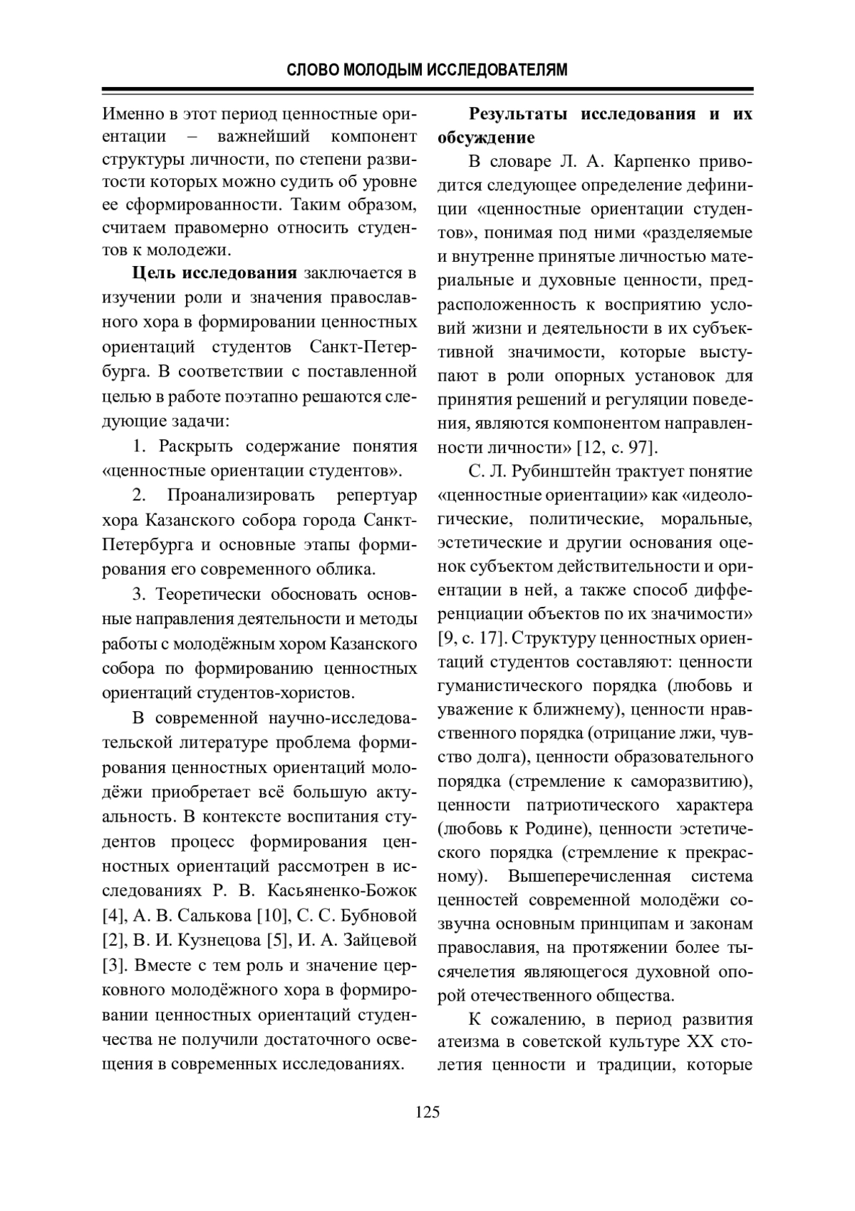 10. Сальков А. В., Касьяненко-Божок Р. В. Ценностные ориентации студентов в университете как основа их ценностного самоопределения // Современное педагогическое образование. 2020. № 12. С. 44 - 48.