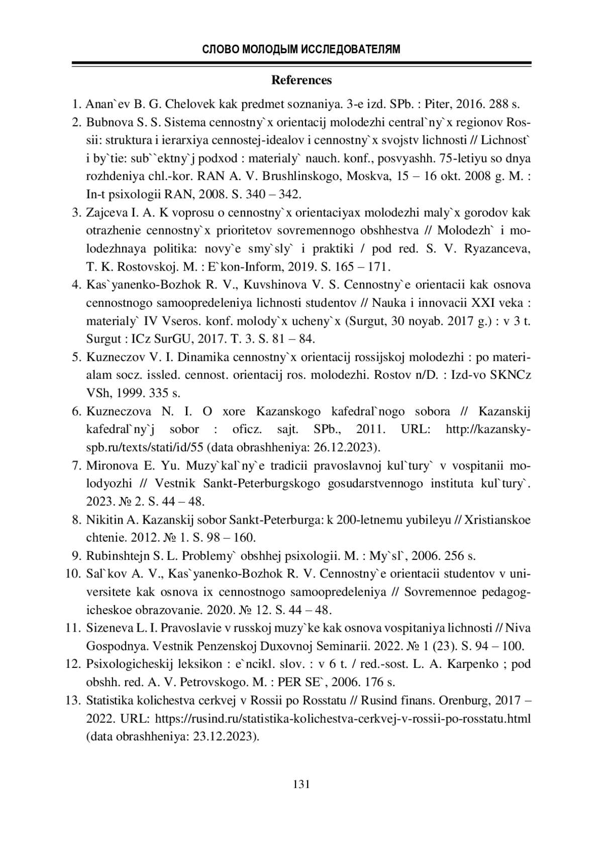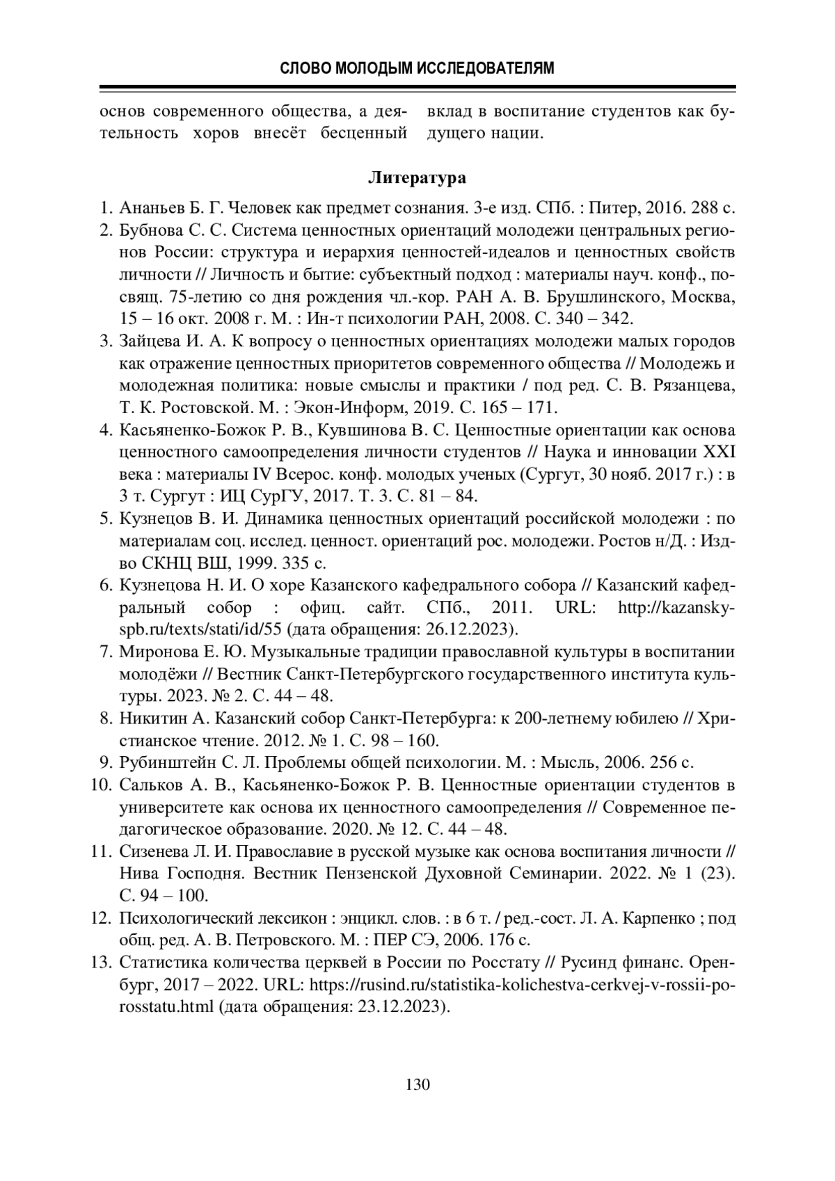 11. Сизенева Л. И. Православие в русской музыке как основа воспитания личности // Нива Господня. Вестник Пензенской Духовной Семинарии. 2022. № 1 (23). С. 94 - 100.
