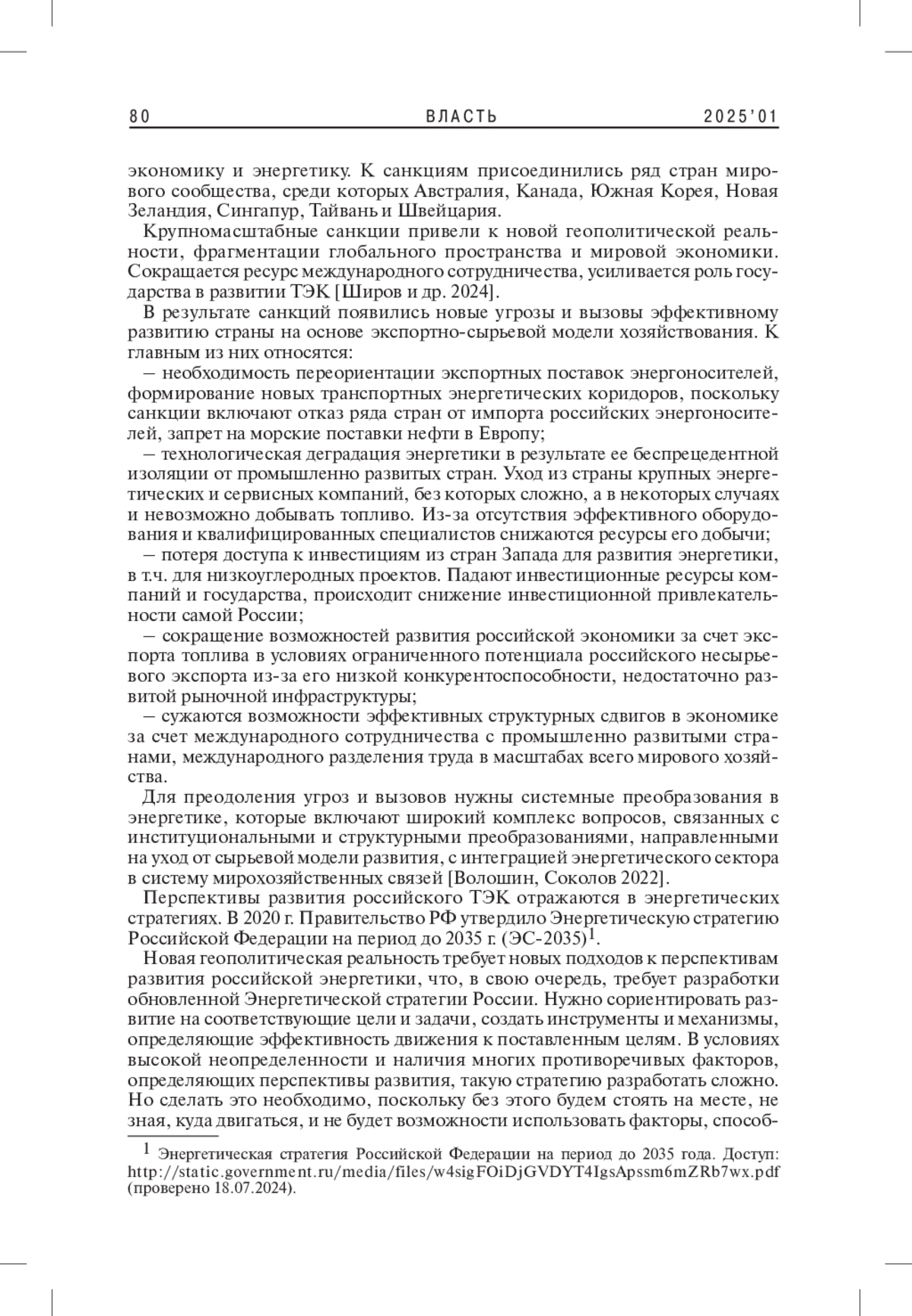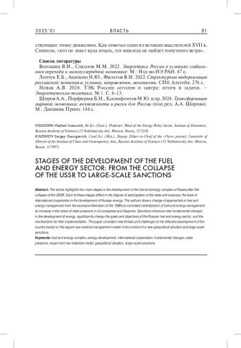 1. 	Волошин В.И., Соколов М.М. 2022. Энергетика России в условиях глобального перехода к низкоуглеродной экономике. М.: Изд-во ИЭ РАН. 47 с.
