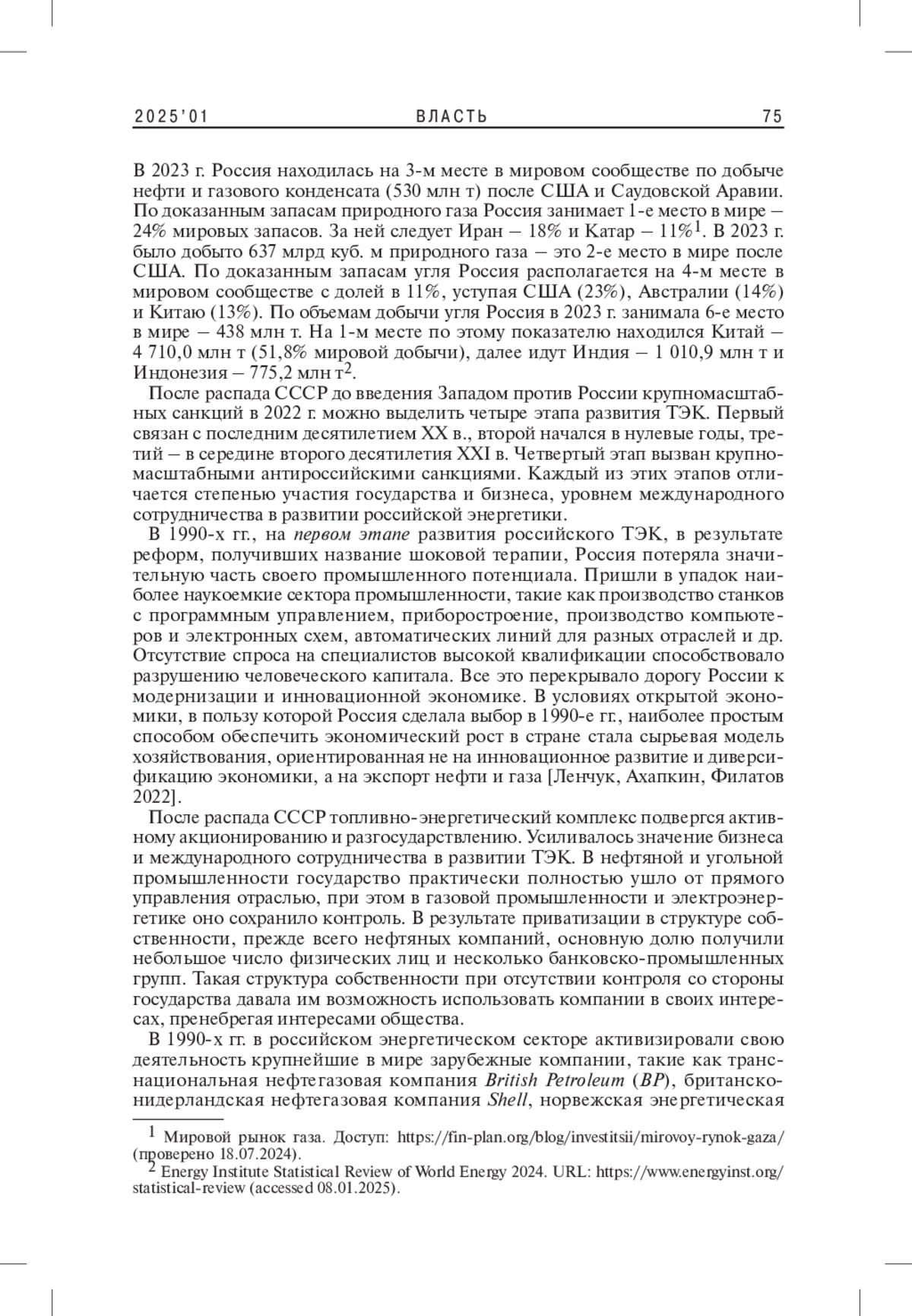 3. 	Новак А.В. 2024. ТЭК России сегодня и завтра: итоги и задачи. - Энергетическая политика. № 1. С. 6-13. EDN: MDYLHI