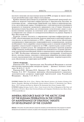 1. 	Павленко В.И. 2013. Арктическая зона Российской Федерации в системе обеспечения национальных интересов страны. - Арктика: экология и экономика. № 4(12). С. 16-25. EDN: RSAPMR