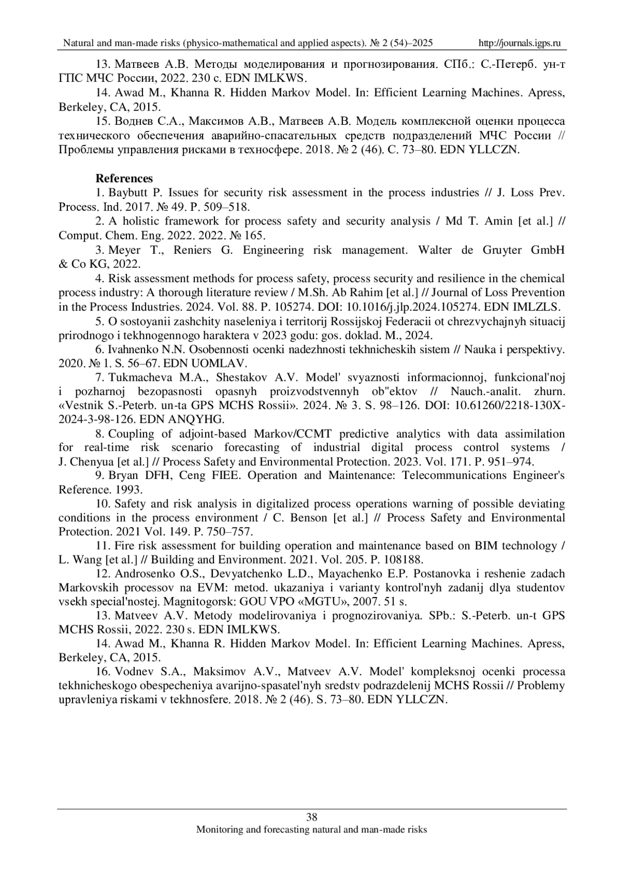 Совокупность информационных, производственных рисков и их агрегирование в пожарной опасности имеют разрушительный характер для техносферы. Ограниченные несистемные исследования в области формального описания моделей информационной, функциональной и пожарной безопасности на опасных производственных объектах обусловливают необходимость развития комплексной математической модели применительно к техносфере. Рассмотрены математические модели на основе Марковских процессов, которые используются при решении различных задач для чрезвычайных ситуаций на опасных производственных объектах.