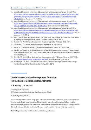 19. 	Schröder M. Wortbildung der deutschen Gegenwartssprache. Tübingen: Niemeyer, 2007. URL: https://www.goethe.de/ins/ru/ru/kul/ser/onl.html (Дата обращения 24.05.2023).