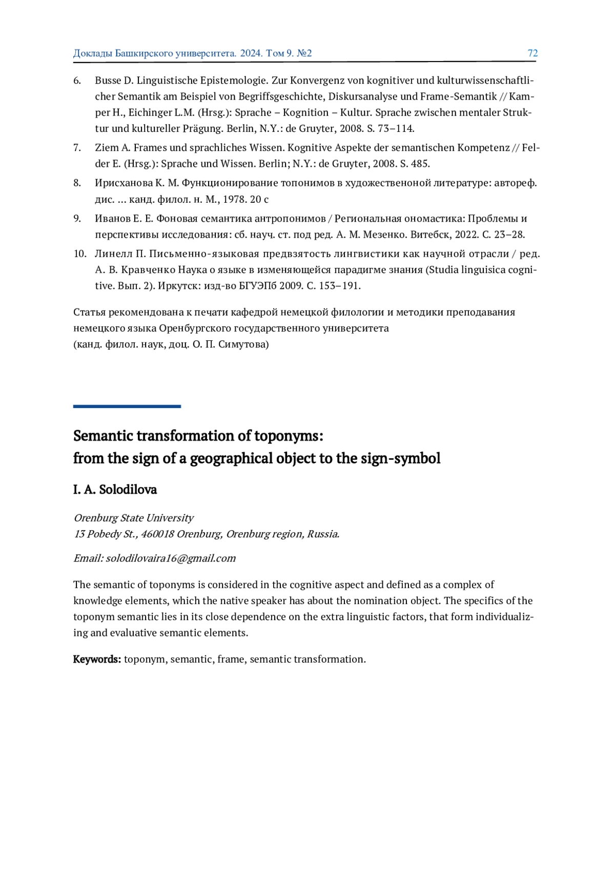8. 	Ирисханова К. М. Функционирование топонимов в художественоной литературе: автореф. дис. … канд. филол. н. М., 1978. 20 с. EDN: YPJGOT