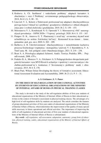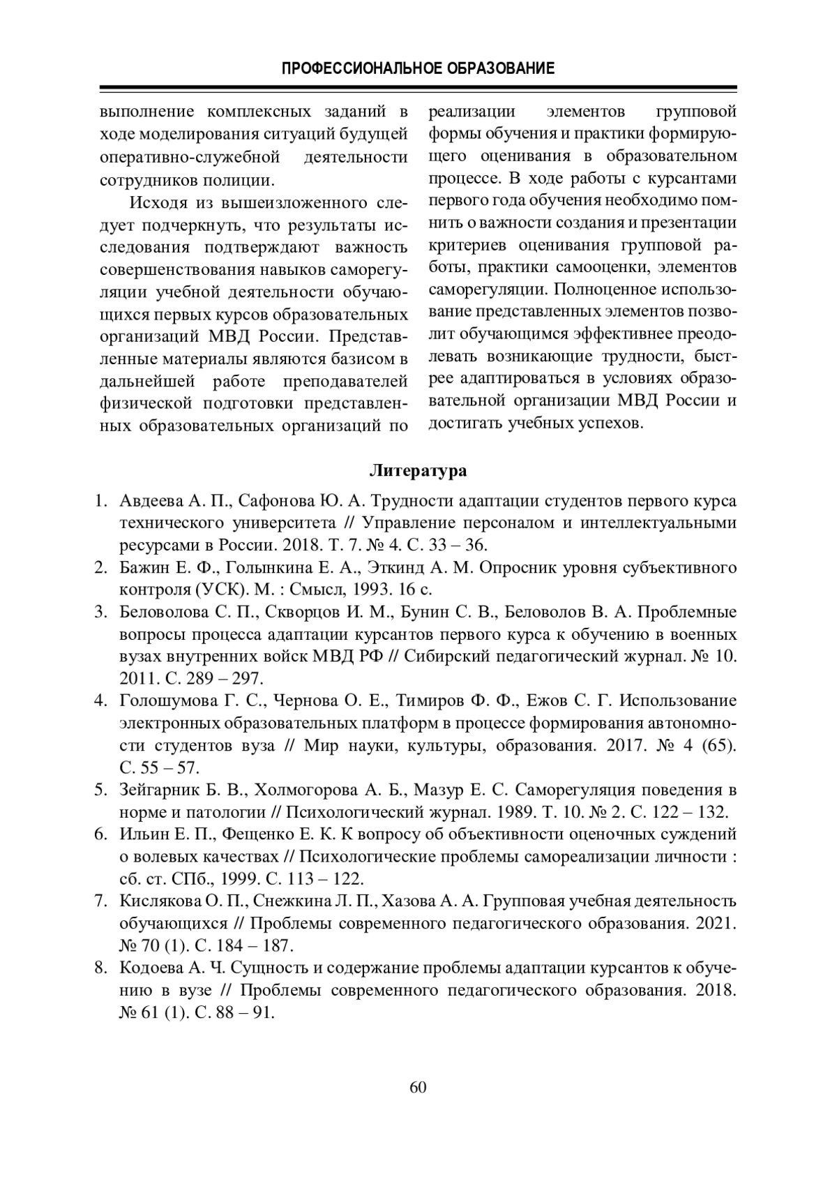 8. Кодоева А. Ч. Сущность и содержание проблемы адаптации курсантов к обучению в вузе // Проблемы современного педагогического образования. 2018. № 61 (1). С. 88 - 91.