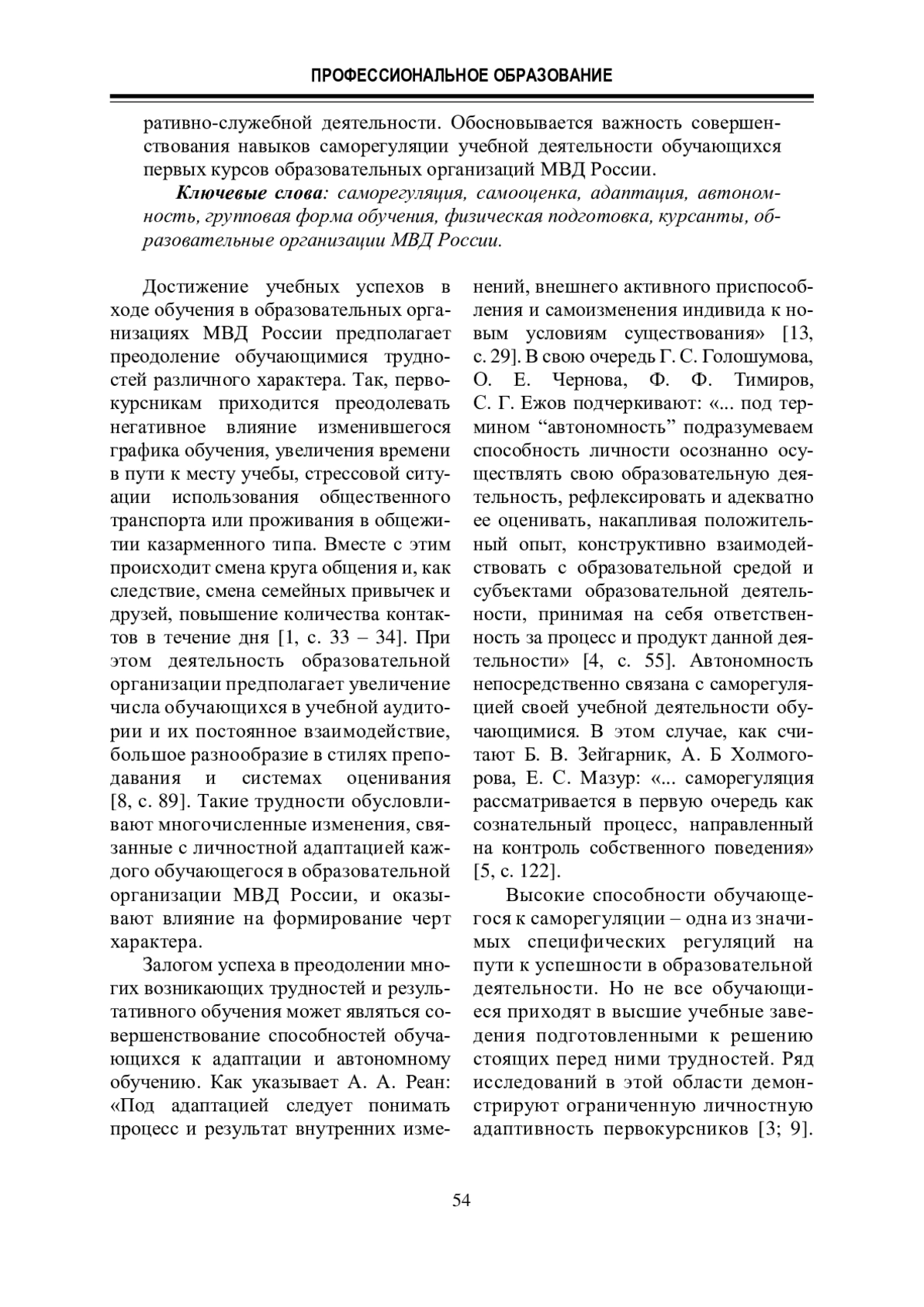 3. Беловолова С. П., Скворцов И. М., Бунин С. В., Беловолов В. А. Проблемные вопросы процесса адаптации курсантов первого курса к обучению в военных вузах внутренних войск МВД РФ // Сибирский педагогический журнал. № 10. 2011. С. 289 - 297.