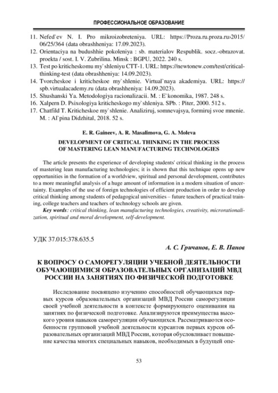 12. Рафикова А. Р. Удовлетворенность обучающихся в менеджменте качества процесса физического воспитания : монография / под ред. В. И. Стародубова, В. А. Тутельяна. М. : Изд.-полиграф. центр «Научная книга», 2021. С. 218 - 238.