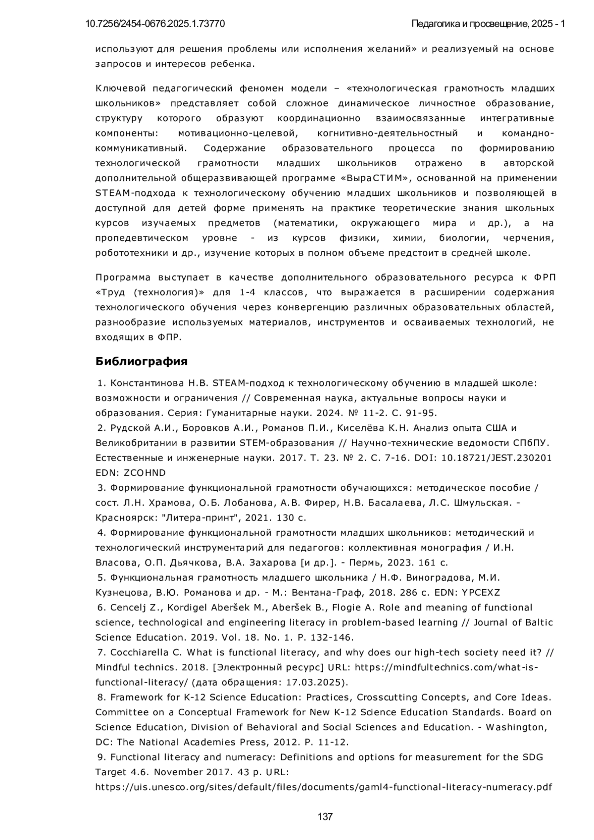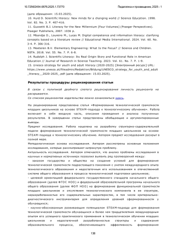 2. 	Рудской А.И., Боровков А.И., Романов П.И., Киселёва К.Н. Анализ опыта США и Великобритании в развитии STEM-образования // Научно-технические ведомости СПбПУ. Естественные и инженерные науки. 2017. Т. 23. № 2. С. 7-16. DOI: 10.18721/JEST.230201