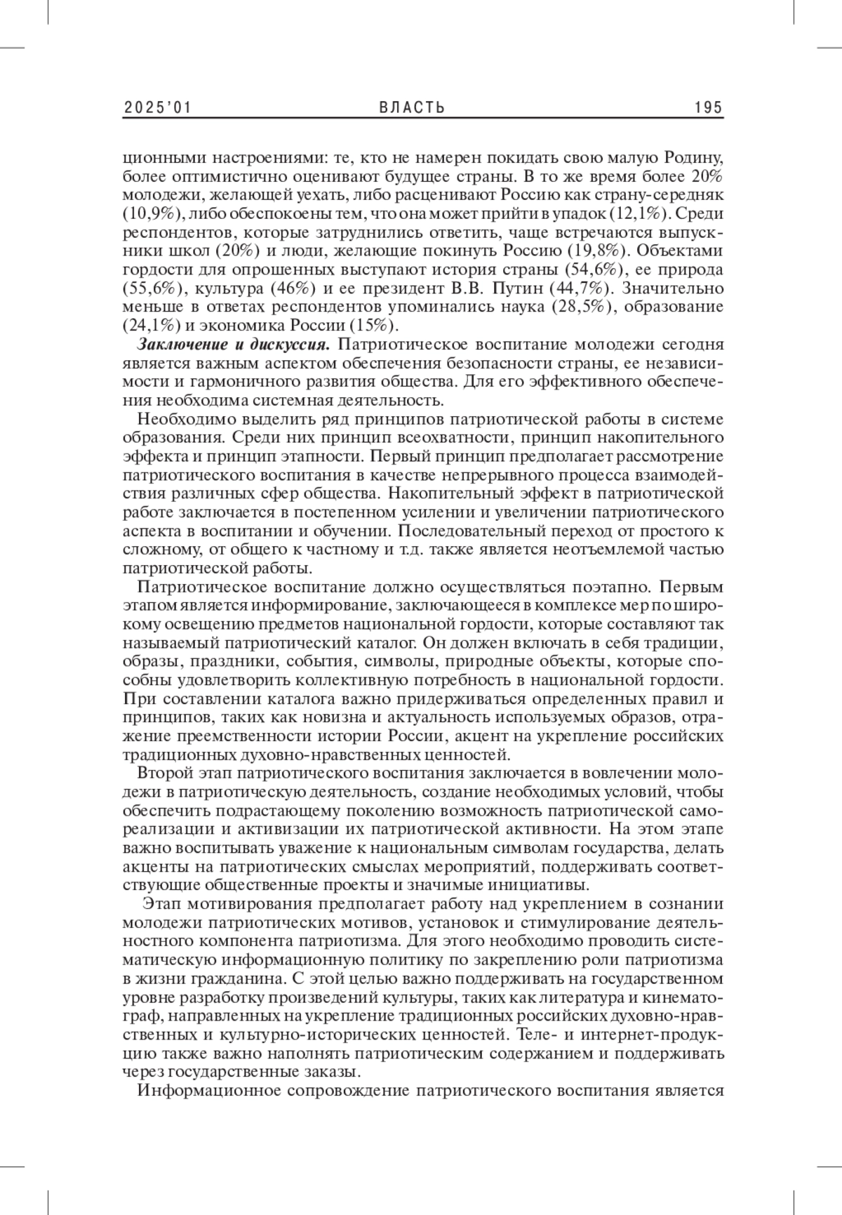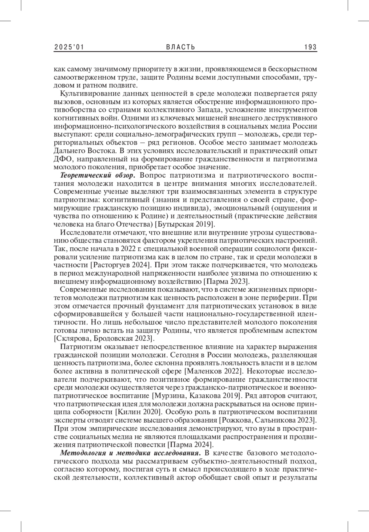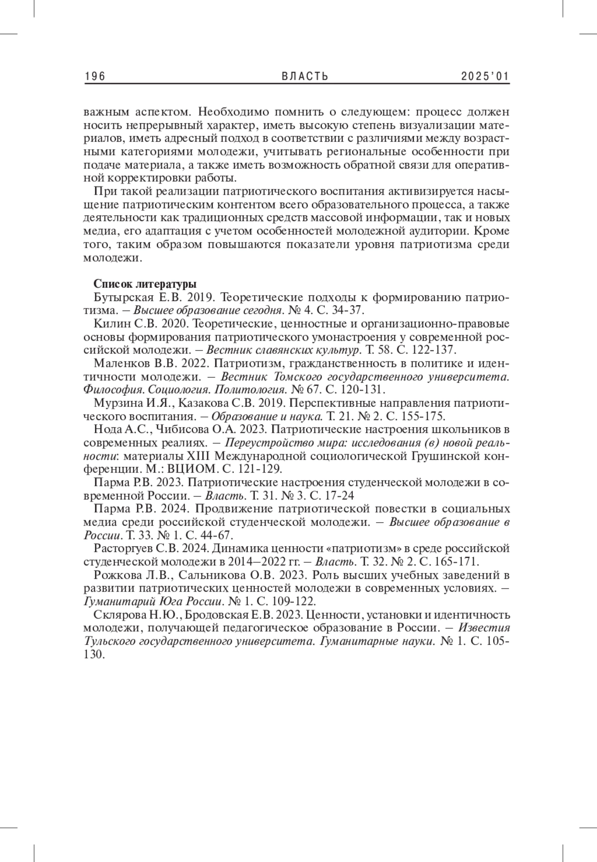 7. 	Парма Р.В. 2024. Продвижение патриотической повестки в социальных медиа среди российской студенческой молодежи. - Высшее образование в России. Т. 33. № 1. С. 44-67. EDN: LLCBSO