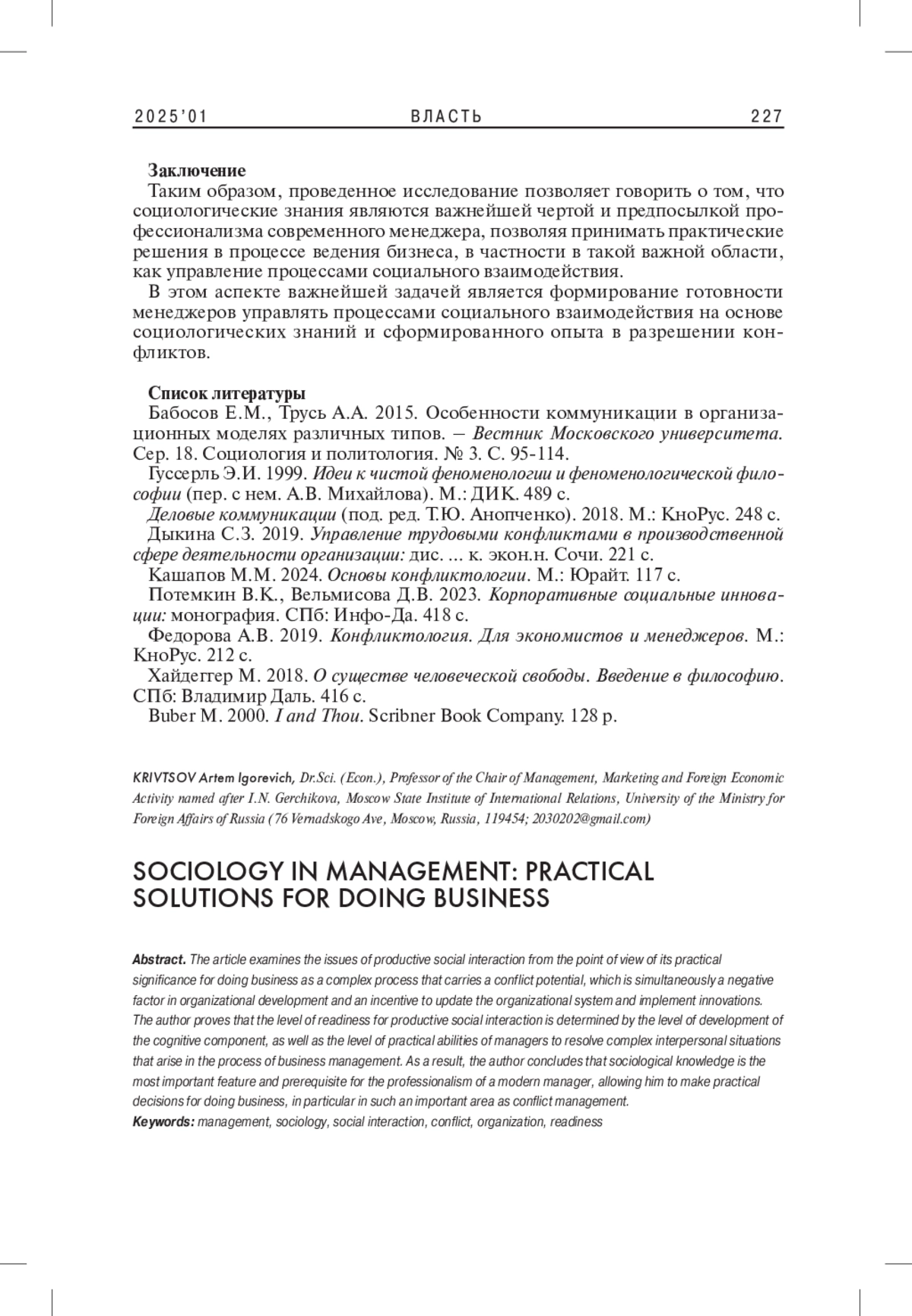 7. 	Федорова А.В. 2019. Конфликтология. Для экономистов и менеджеров. М.: КноРус. 212 с.