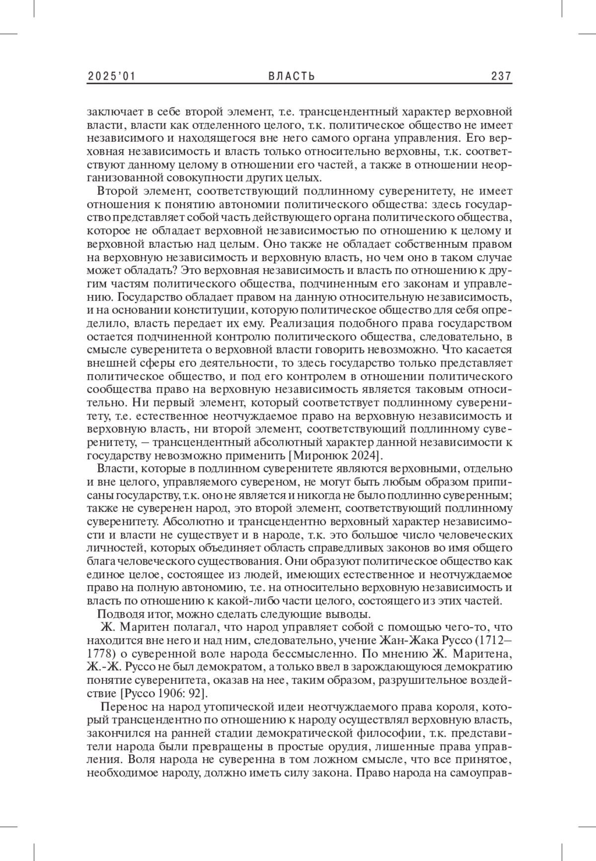 6. 	Маритен Ж. 2000. Человек и государство (пер. с англ. Т. Лифинцевой). М.: Идея-Пресс. 196 с.