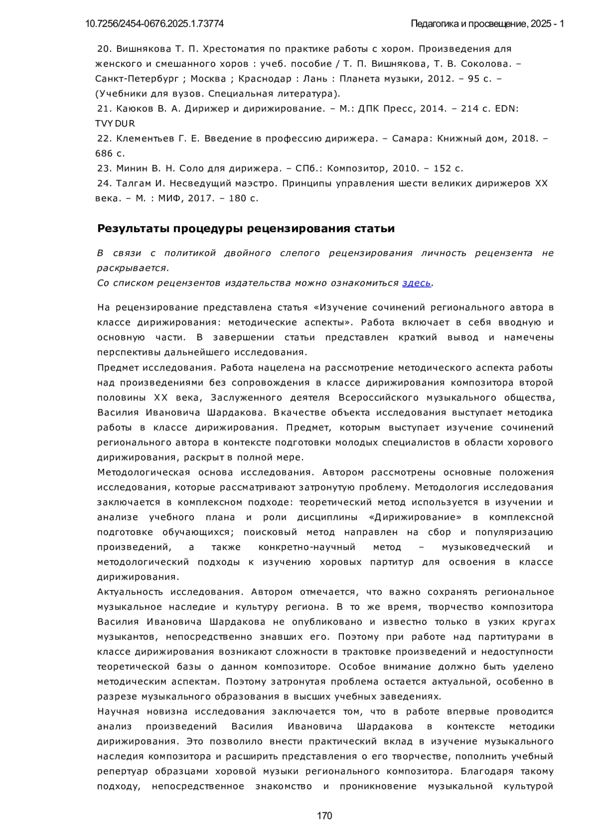 В статье рассматриваются особенности дирижирования хоровых произведений без сопровождения регионального композитора Василия Ивановича Шардакова. Подготовка молодого специалиста - дирижера академическим хором является комплексной и разносторонней. Имея множество подходов в практической работе, необходимо уделять внимание и теоретической подготовке обучающихся, в том числе расширять музыкальный кругозор. Одним из компонентов подготовки является знакомство с произведениями регионального значения. Знание истории хоровой музыкальной культуры своего региона поможет молодым специалистам приобрести целостный музыкальный кругозор. Пристальное внимание в работе уделяется методическим основам освоения произведений - через анализ дирижерского плана выявляются трудности представленных рукописей. Задачи, которые ставят авторы в данном исследовании заключаются в рассмотрении основных компонентов работы в классе дирижирования, а также анализе дирижерского плана хоровых произведений без сопровождения композитора Алтайского края В. И. Шардакова. Рассмотрение партитур через призму дирижерских приемов позволяет глубже понять особенности музыкального языка, стилистические приёмы и композиторские техники. Методология данного исследования заключается в комплексном подходе: теоретический подход к проблеме исследования - заключается в изучении и анализе учебного плана и роли дисциплины «Дирижирование», поисковый метод - сбор и популяризация произведений, а также конкретно-научный метод - музыковедческий и методический подходы к изучению хоровых партитур. Особым вкладом авторов в исследование является представление анализа произведений Василия Ивановича Шардакова в контексте методики дирижирования. Представленные произведения являются результатом проводимой поисковой работы по сохранению регионального музыкального наследия. Это обогащает теоретические представления о региональном музыкальном наследии и в целом о музыке второй половины XX века. Изучая произведения региональных композиторов молодые специалисты расширяют кругозор, знакомятся с новыми образцами хоровой культуры, а также формируется творческий облик дирижера хорового коллектива. В результате проводимой работы произведения композитора приобрели большее количество слушателей, найденные рукописи получили современное издание, а обучающиеся знакомятся с прекрасными образцами регионального хорового творчества. Несомненно, данная работа имеет перспективы развития и введение в творческий и научный оборот образцов хоровой музыки других композиторов региона.