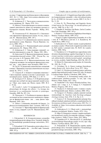 9. Черникова А. Э. Перспективные направления исследования динамического аспекта фразеологии // Инновационные научные исследования в гуманитарных, естественных, технических и общественных науках: методология, теория, практика. СПб., 2014. С. 229-231.