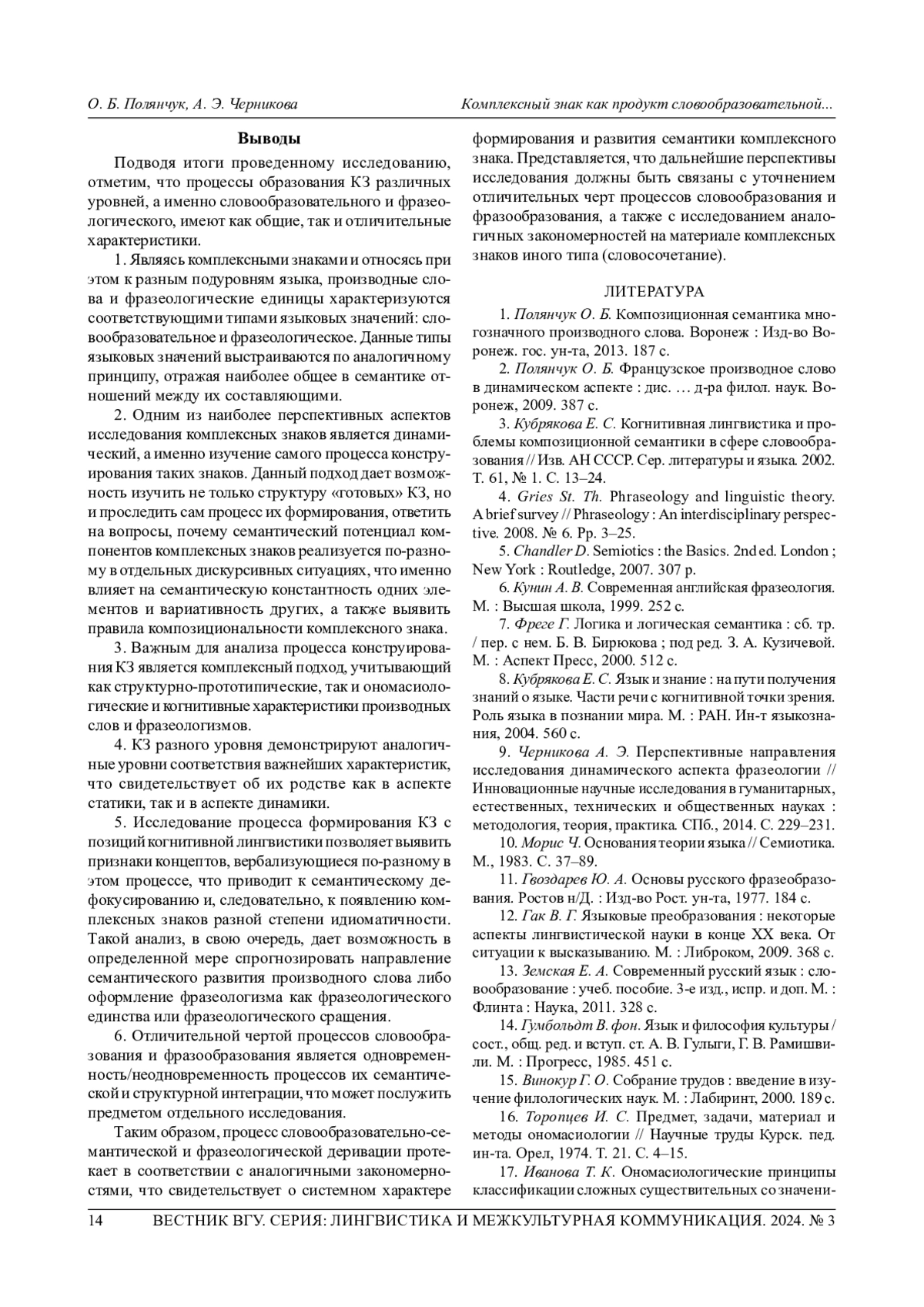 3. Кубрякова Е. С. Когнитивная лингвистика и проблемы композиционной семантики в сфере словообразования // Изв. АН СССР. Сер. литературы и языка. 2002. Т. 61, № 1. С. 13-24.