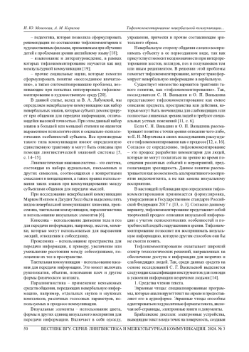 8. 	Назаренко Т. Ю. Роль невербальной коммуникации в учебном процессе // Евразийский гуманитарный журнал. 2022. № 1. С. 70-77. EDN: UPTQDT