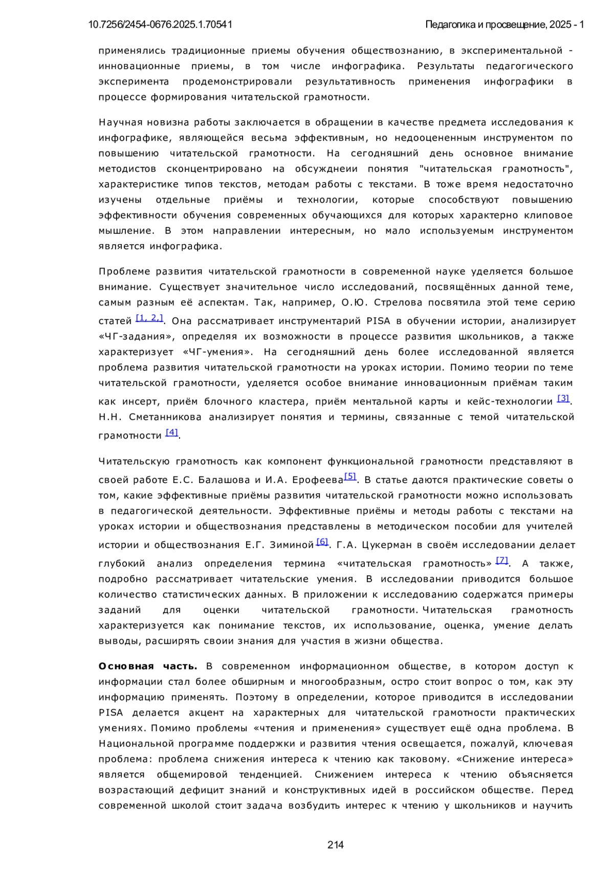 4. 	Сметанникова Н. Н. Чтение, грамотность, читательская компетентность: стратегия развития // Библиотековедение. 2017. Т. 66, № 1. С. 41-48.