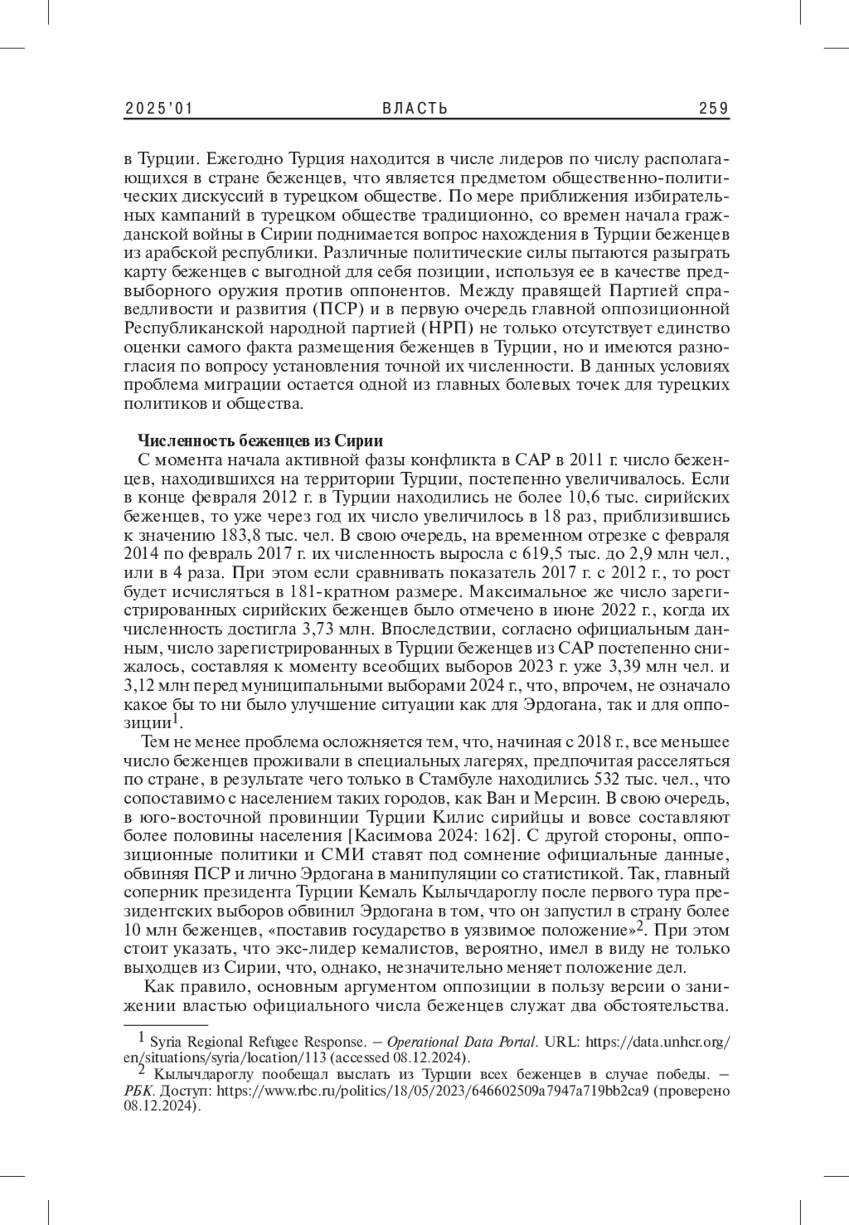 3. 	Касимова И.С. 2024. Сирийские беженцы как фактор внутриполитической жизни Турции. - Проблемы национальной стратегии. № 1(82). С. 160-179. EDN: TVMLFJ