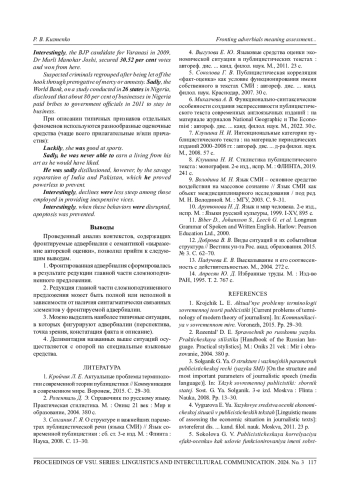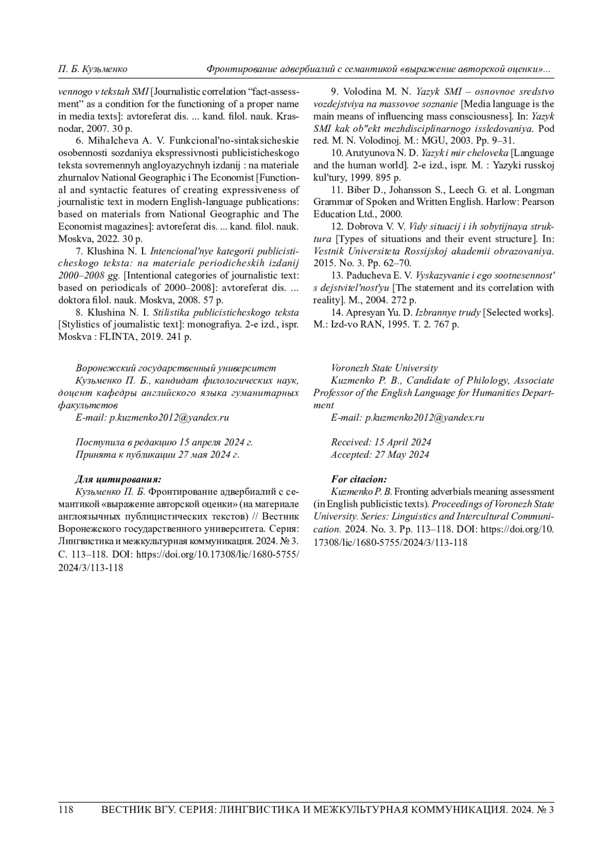 6. 	Михалчева А. В. Функционально-синтаксические особенности создания экспрессивности публицистического текста современных англоязычных изданий: на материале журналов National Geographic и The Economist: автореф. дис.. канд. филол. наук. М., 2022. 30 с. EDN: AEOVXY