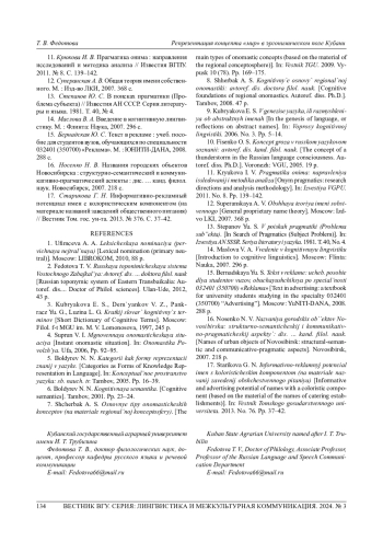 7. 	Щербак А. С. Основные типы ономастических концептов (на материале региональной концептосферы) // Вестник ТГУ 2009. Вып. 10 (78). С. 169-175.