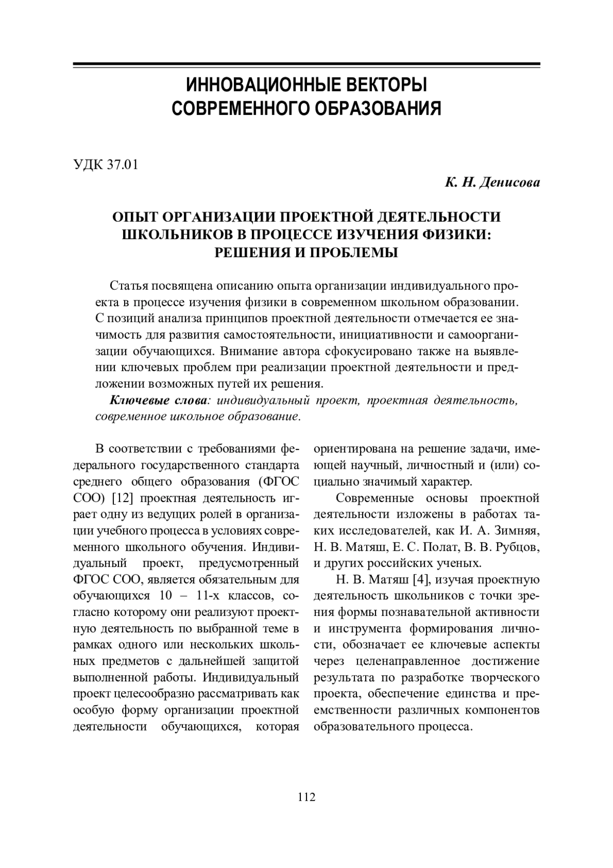 4. Матяш Н. В. Психология проектной деятельности школьников : автореф. дис. ... д-ра психол. наук. Брянск, 2000. 52 с.