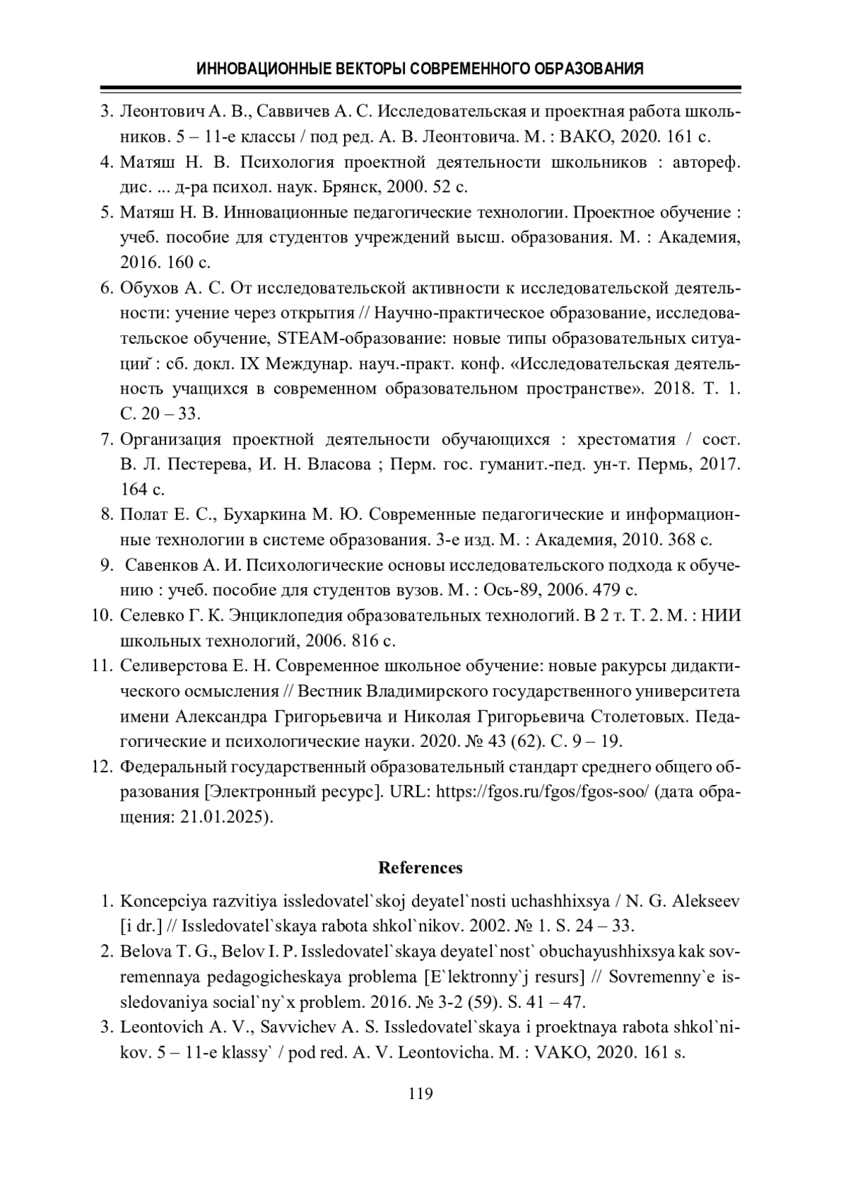 3. Леонтович А. В., Саввичев А. С. Исследовательская и проектная работа школьников. 5 - 11-е классы / под ред. А. В. Леонтовича. М. : ВАКО, 2020. 161 с.