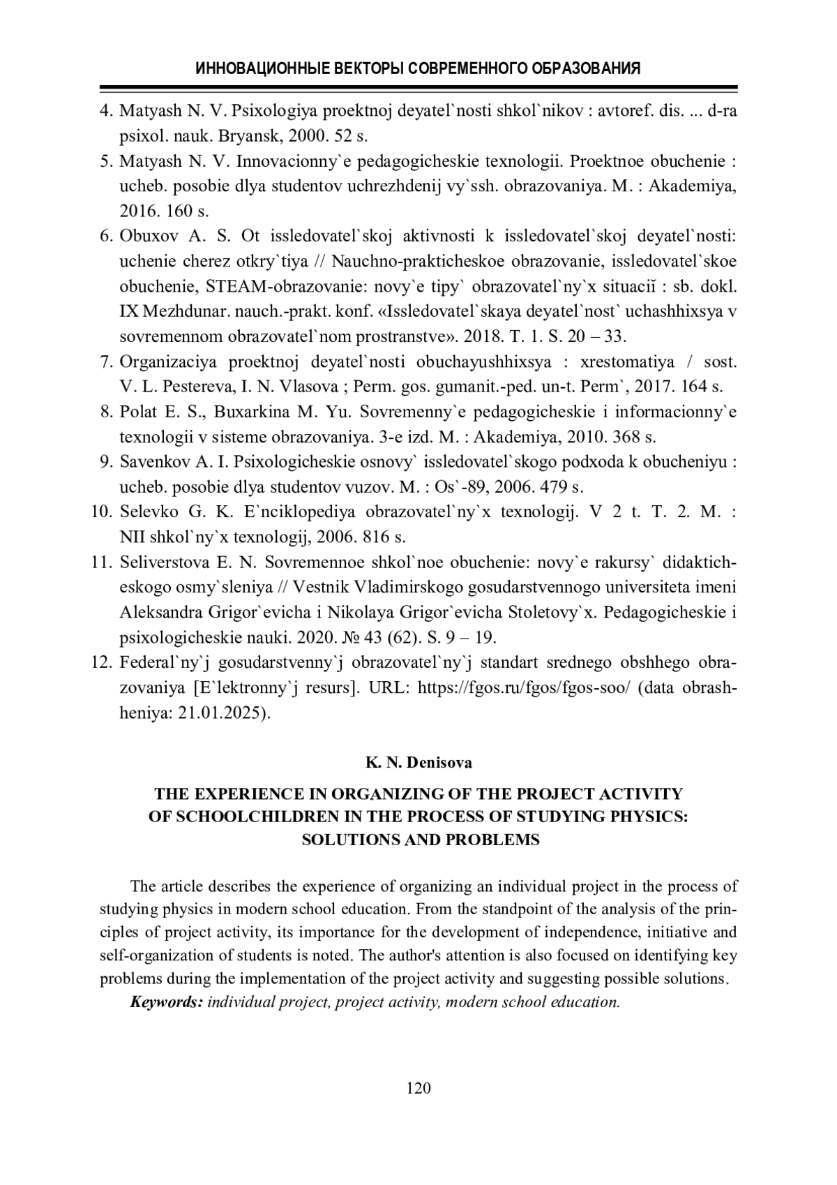 11. Селиверстова Е. Н. Современное школьное обучение: новые ракурсы дидактического осмысления // Вестник Владимирского государственного университета имени Александра Григорьевича и Николая Григорьевича Столетовых. Педагогические и психологические науки. 2020. № 43 (62). С. 9 - 19.