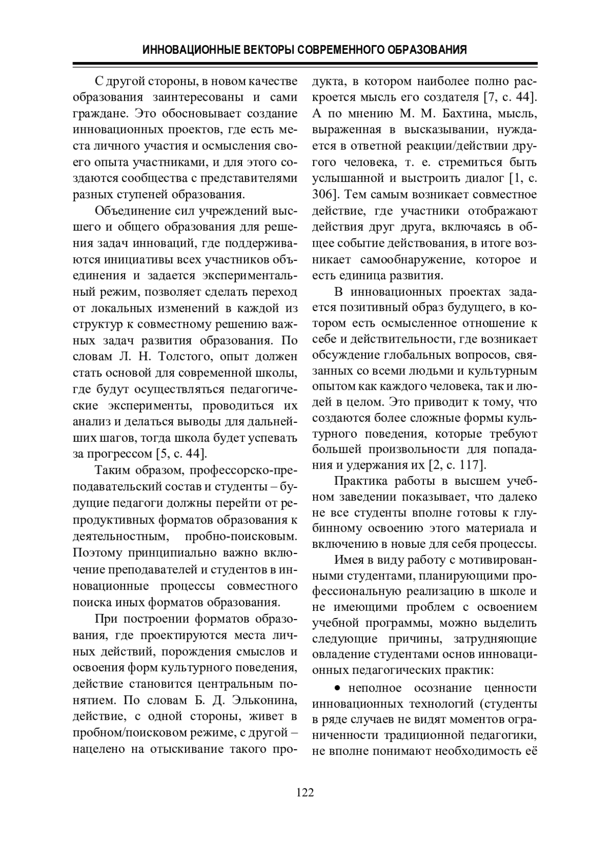В инновационных проектах задается позитивный образ будущего, в котором есть осмысленное отношение к себе и действительности, где возникает обсуждение глобальных вопросов, связанных со всеми людьми и культурным опытом как каждого человека, так и людей в целом.
