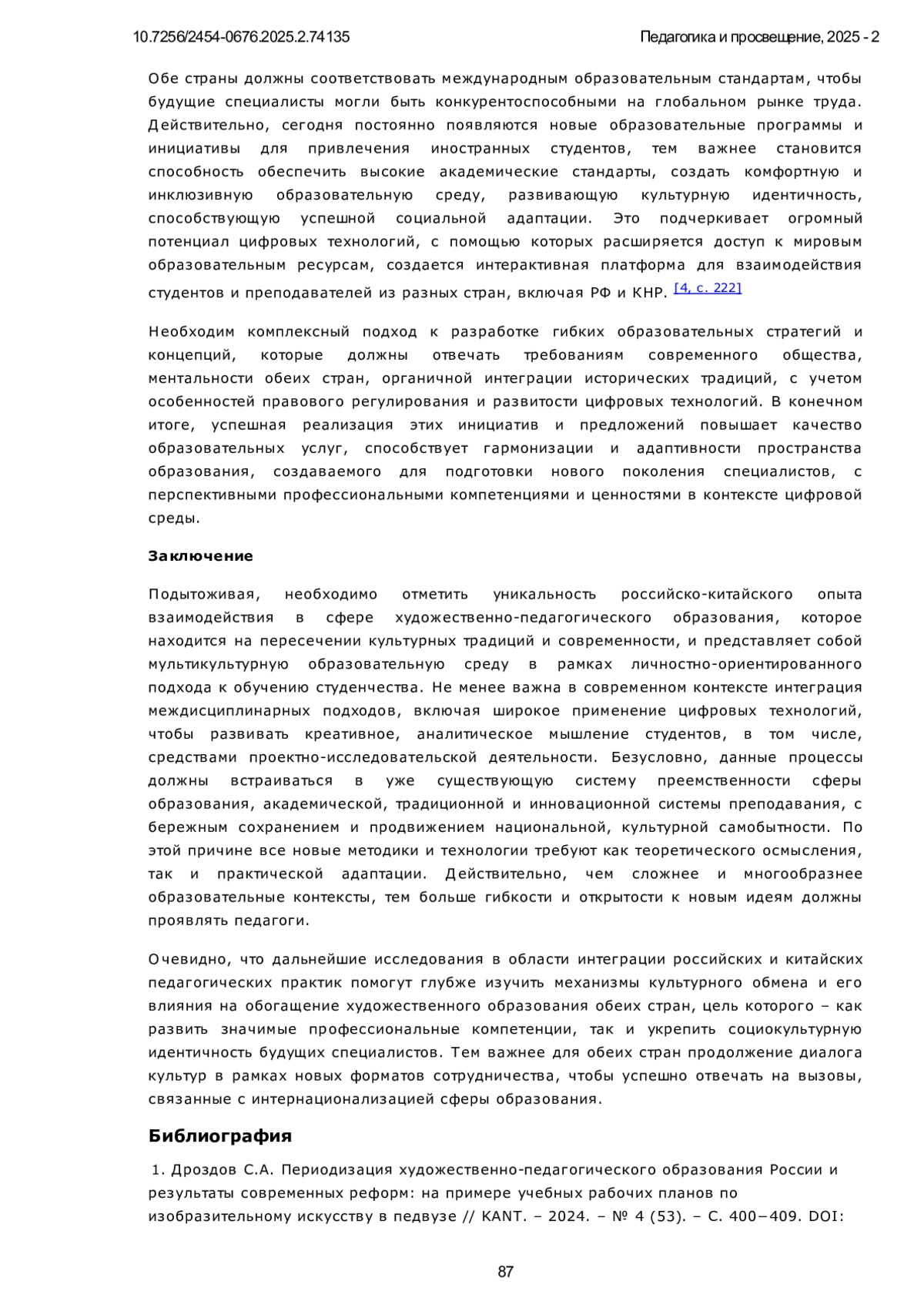 6. Лю П. Современное художественное образование в Китае (проблемы и перспективы) // Мир науки. Педагогика и психология. - 2023. - Т. 11. - № 5. - URL: https://mir-nauki.com/PDF/44PDMN523.pdf.