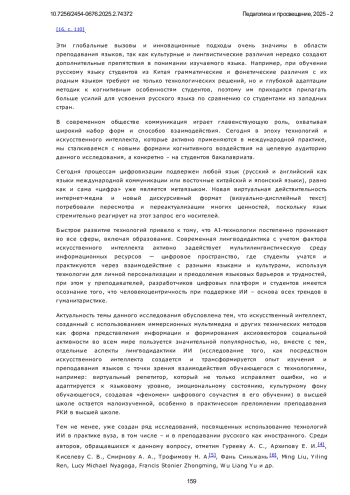 8. Фань Синьжань. Исследование применения технологий искусственного интеллекта в преподавании русского языка как иностранного в Китае // Молодой учёный. 2025. № 10(561). С. 200-203.