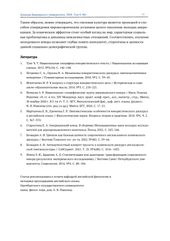 7. 	Бочкарев А. И. Цинизм как базовая ценность современного англоязычного комического дискурса // Вестник Томского гос. ун-та. 2022. №482. С. 59-66. EDN: WOYVXX