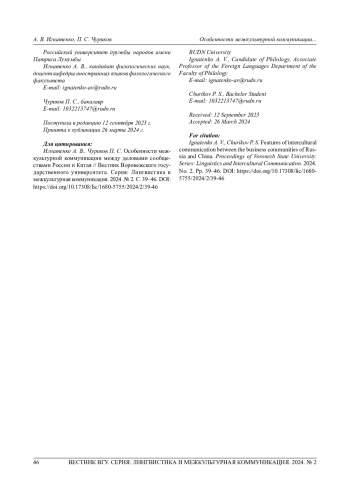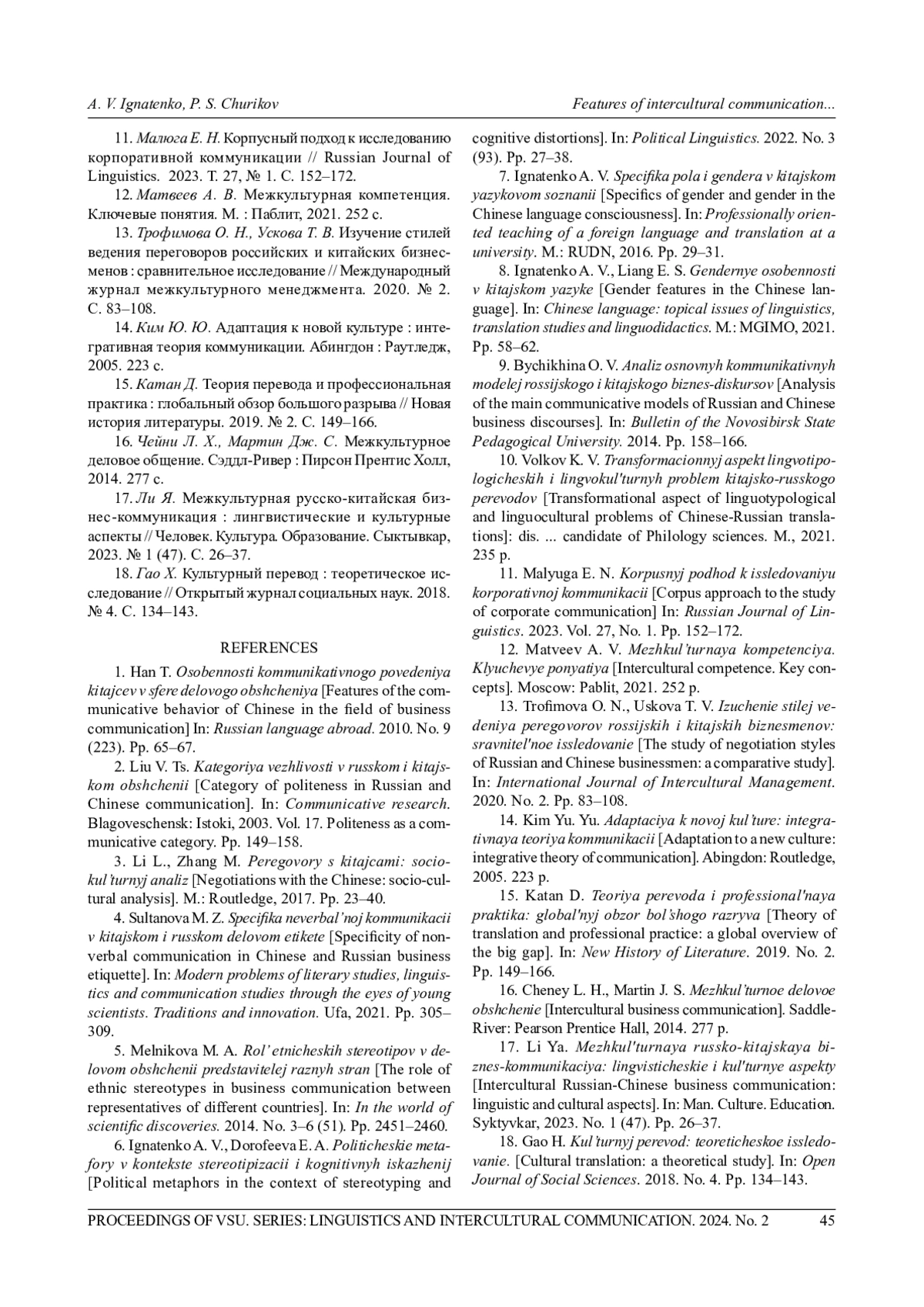 17. 	Ли Я. Межкультурная русско-китайская бизнес-коммуникация: лингвистические и культурные аспекты // Человек. Культура. Образование. Сыктывкар, 2023. № 1 (47). С. 26-37.