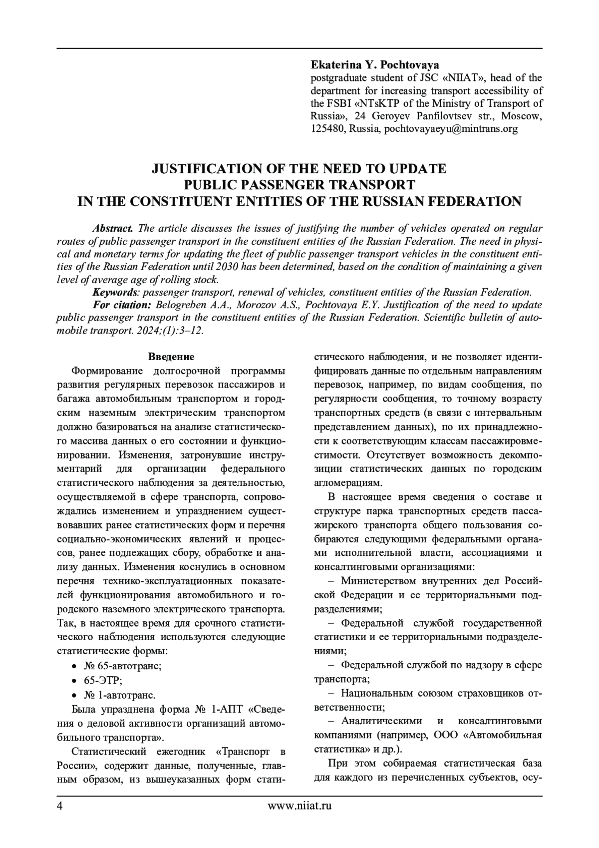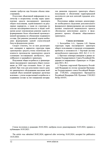 В статье рассмотрены вопросы обоснования количества транспортных средств, эксплуатируемых на регулярных маршрутах пассажирского транспорта общего пользования в субъектах Российской Федерации. Определена потребность в натуральном и стоимостном выражении в обновлении парка транспортных средств пассажирского транспорта общего пользования в субъектах Российской Федерации до 2030 года исходы из условия поддержания заданного уровня среднего возраста подвижного состава.