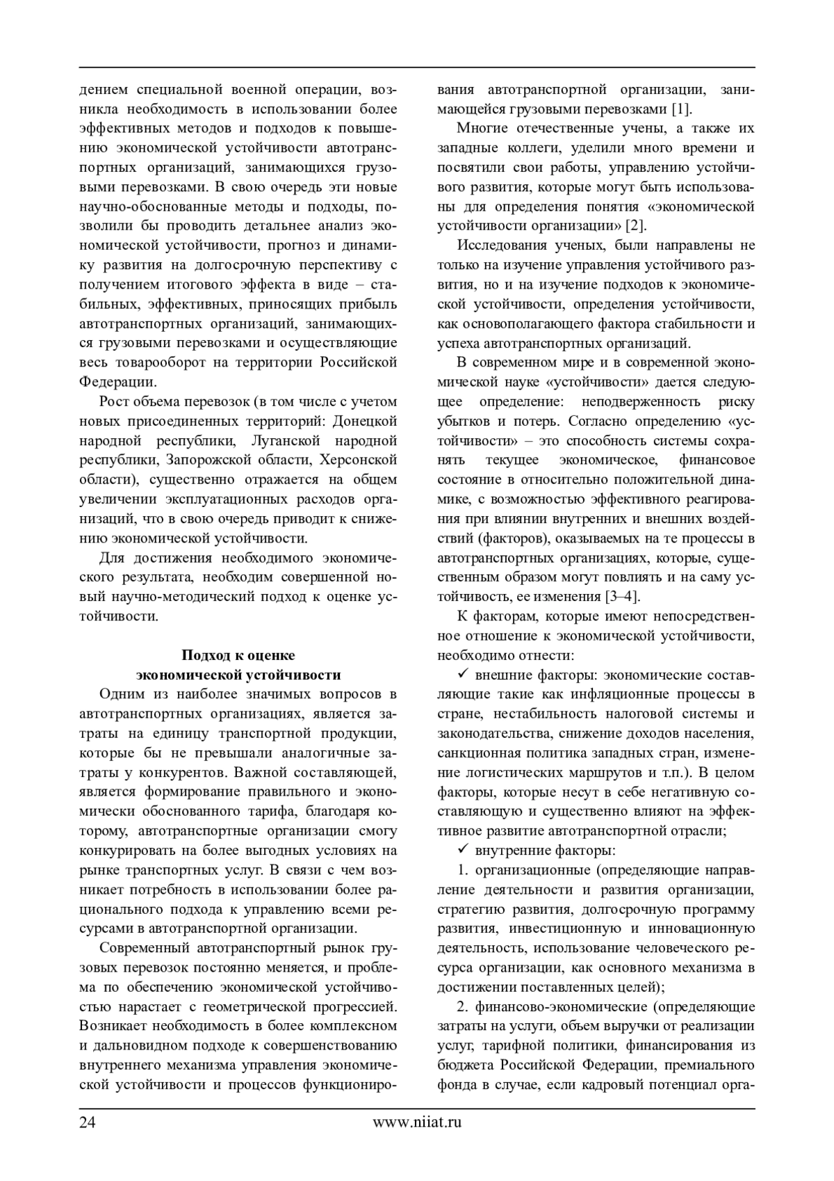 В данной статье рассматривается вопрос о научно-методическом подходе к оценки экономической устойчивости автотранспортных организаций и ключевых проблемах. Вопрос является актуальным на сегодняшний день. Перед транспортными организациями стоит задача о кардинальном улучшении методов оценки внутреннего финансового состояния. Особое внимание уделено методике и механизмам по управлению экономической устойчивостью в автотранспортных организациях.