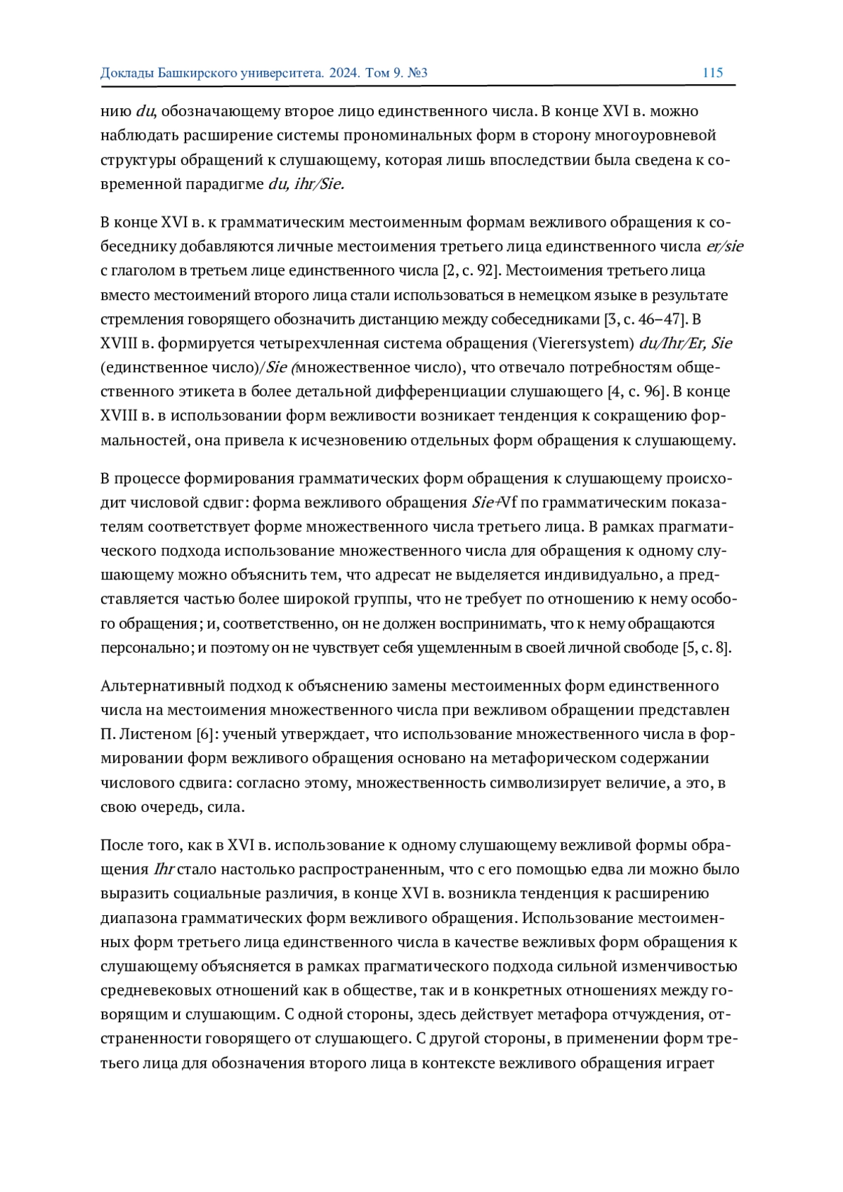 7. Simon, Horst J. From pragmatics to grammar. Tracing the development of ‘respect’ in the history of the German pronouns of address. In: Diachronic perspectives on address term systems (= Pragmatics and Beyond. N. S. 107). Amsterdam, Philadelphia: Benjamins, 2003. P. 85-123.