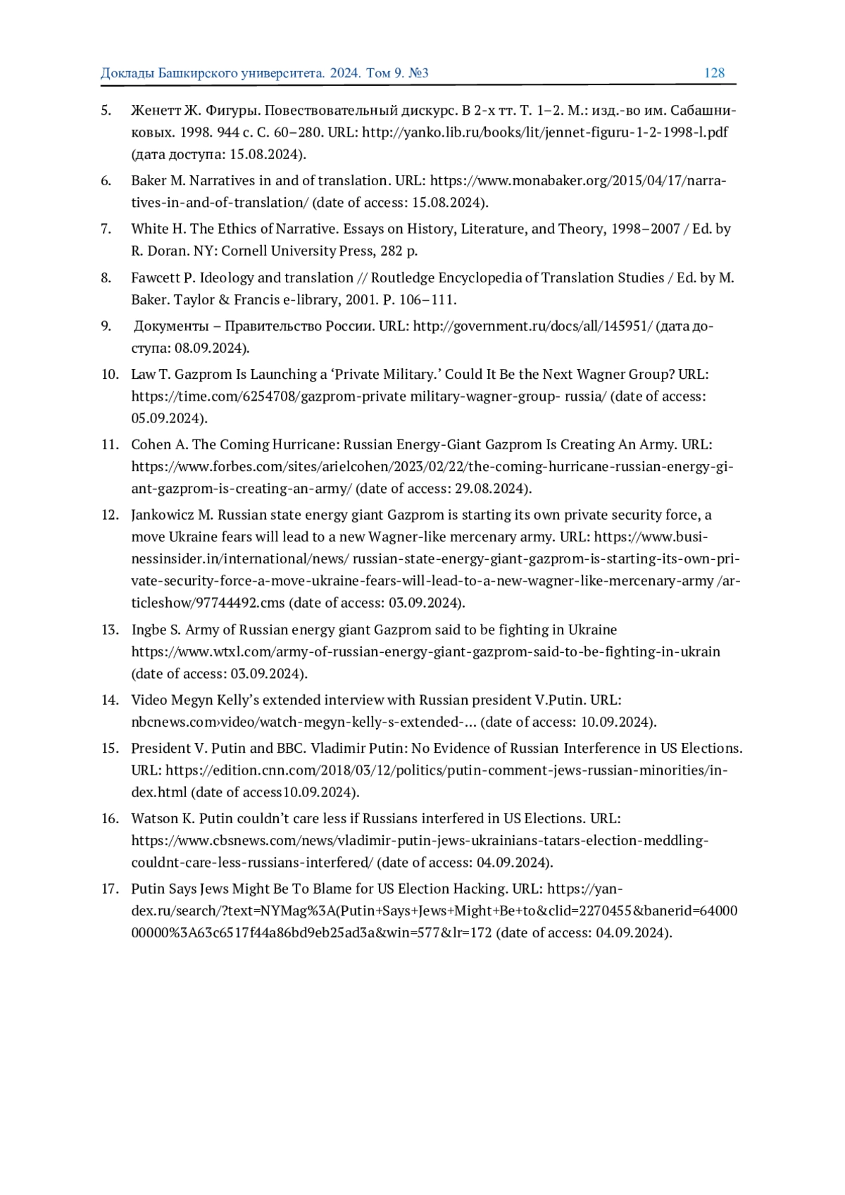 10. 	Law T. Gazprom Is Launching a ‘Private Military.’ Could It Be the Next Wagner Group? URL: https://time.com/6254708/gazprom-private military-wagner-group- russia/(date of access: 05.09.2024).