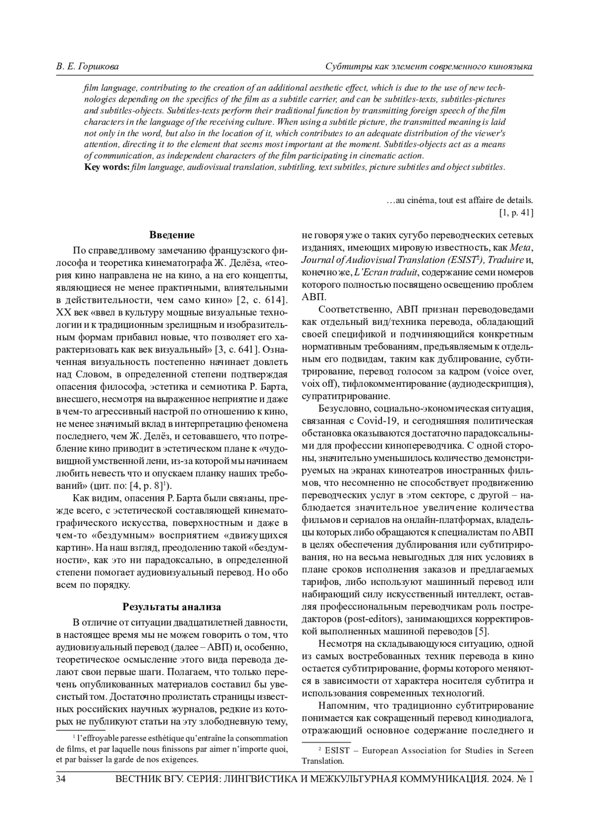 5. 	Editorial // L’Ecran traduit: revue sur la traduction et l’adaptation audiovisuelles. 2021. № 7. P. 2-3.