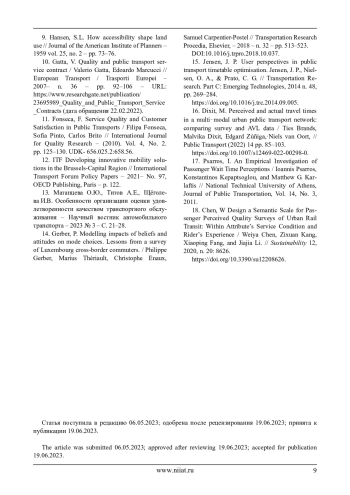 10. Gatta, V. Quality and public transport service contract / Valerio Gatta, Edoardo Marcucci // European Transport / Trasporti Europei – 2007– n. 36 – рр. 92–106 – URL: https://www.researchgate.net/publication/ 23695989_Quality_and_Public_Transport_Service _Contracts (дата обращения 22.02.2022).