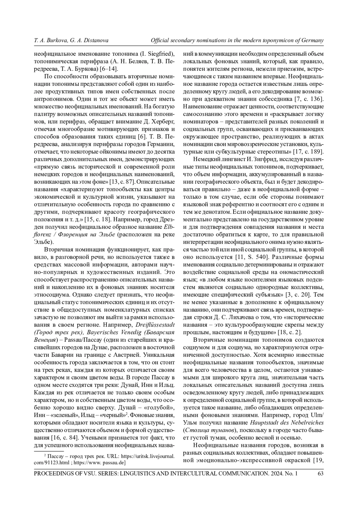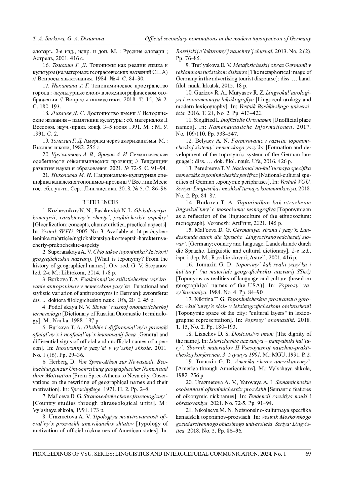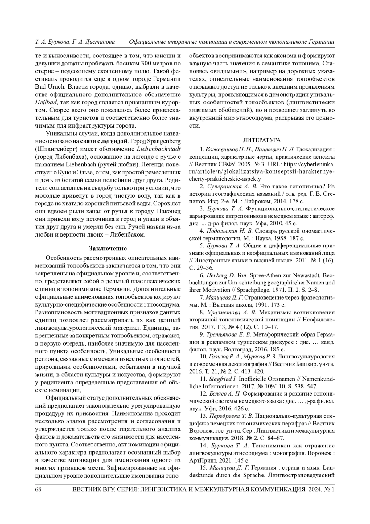 13. 	Передреева Т. В. Национально-культурная специфика немецких топонимических перифраз // Вестник Воронеж. гос. ун-та. Сер.: Лингвистика и межкультурная коммуникация. 2018. № 2. С. 84-87. EDN: XVFJOX