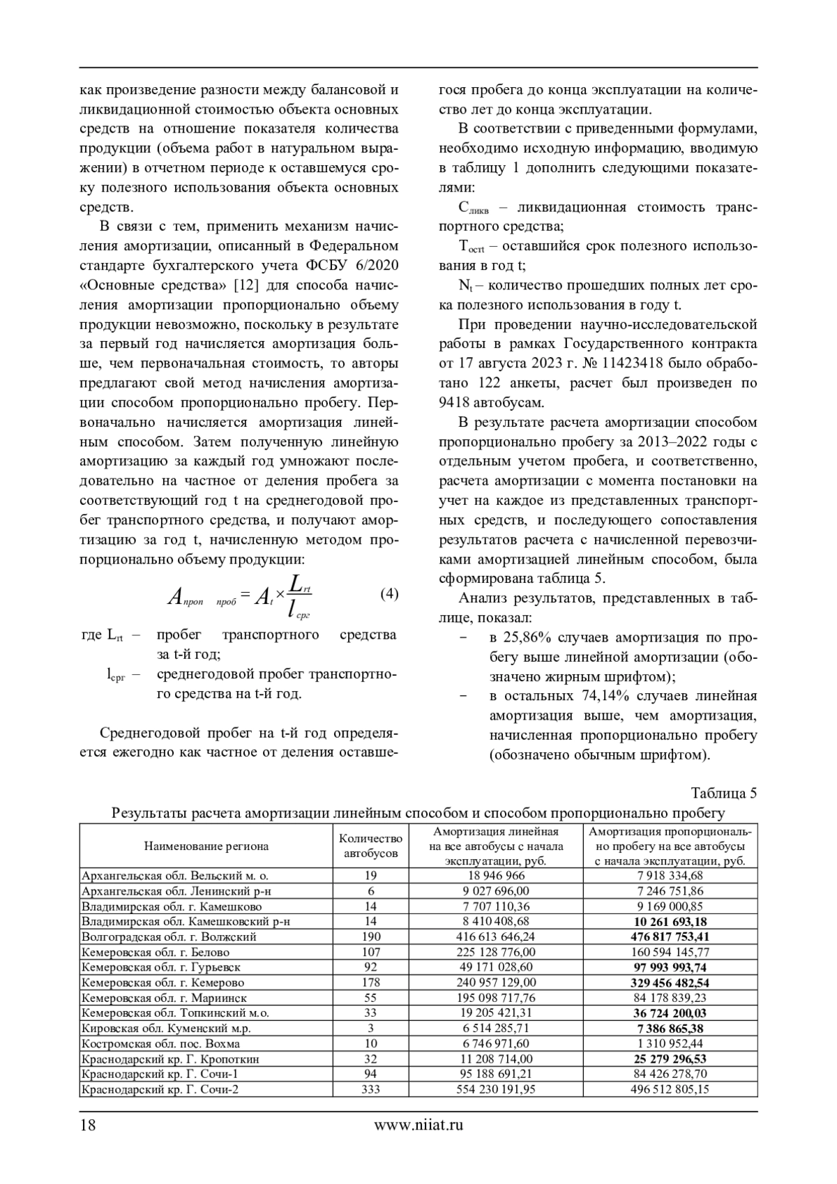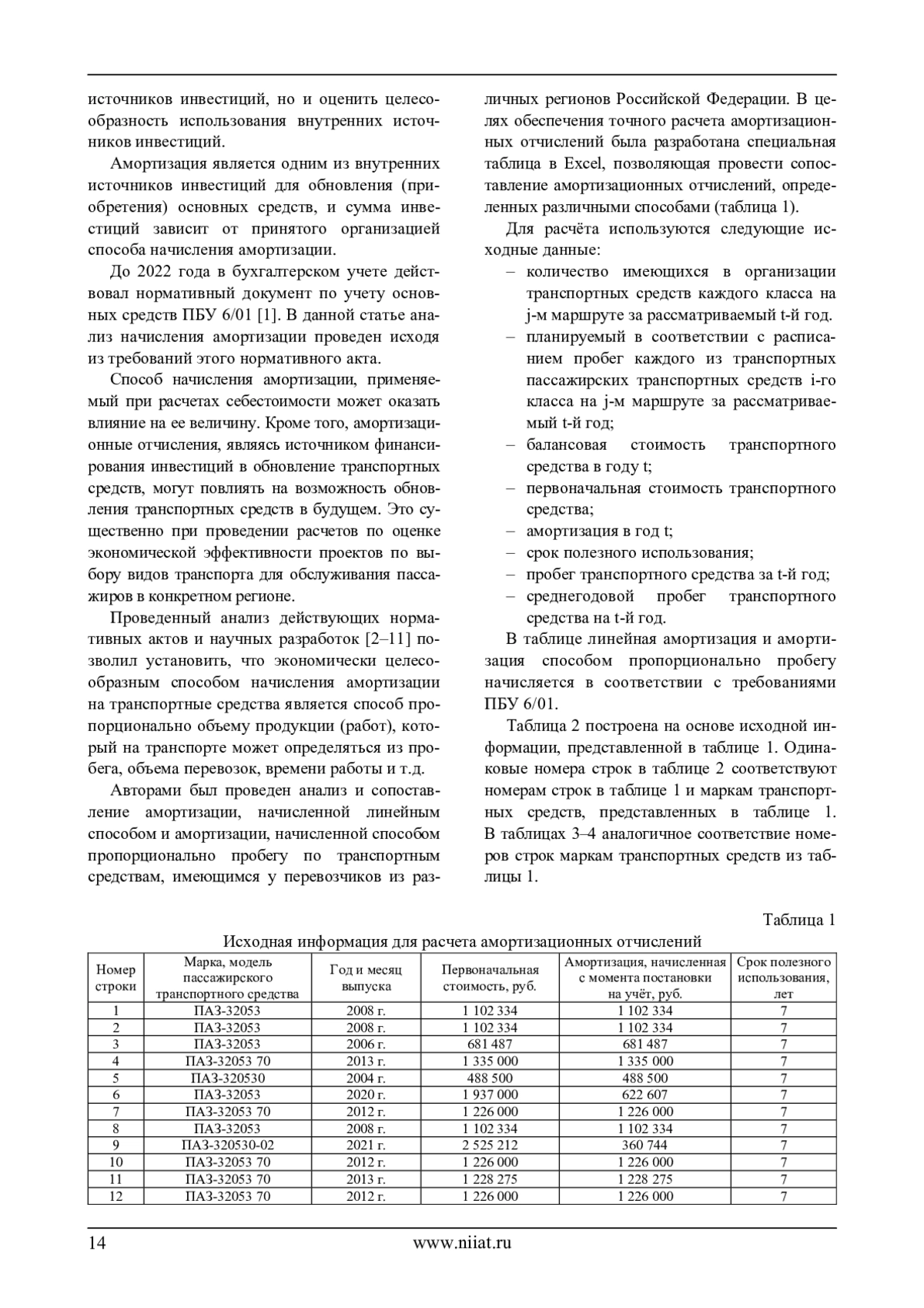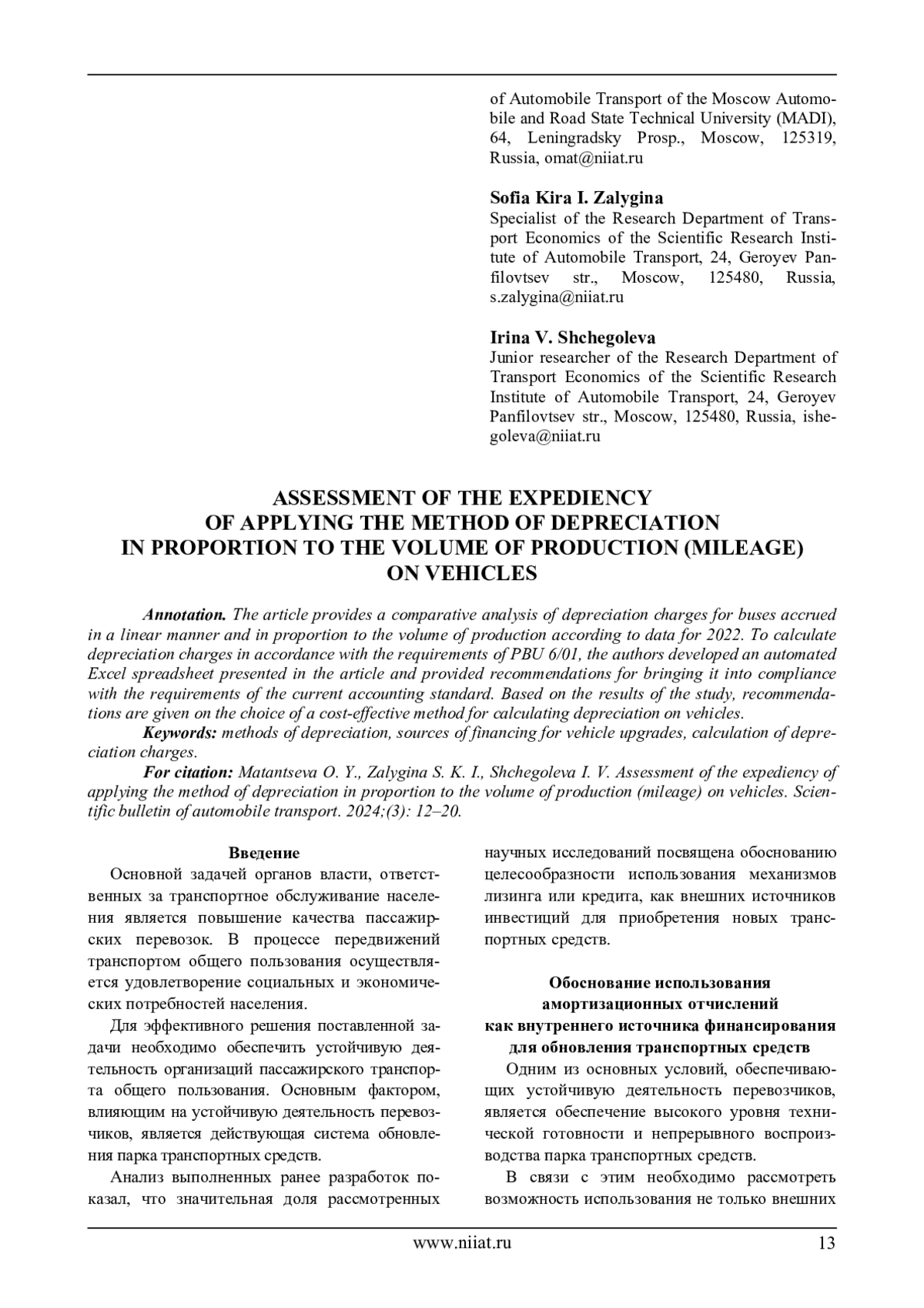 В статье проводится сравнительный анализ амортизационных отчислений на автобусы, начисленных линейным способом и способом пропорционально объему продукции по данным за 2022 год. Для расчета амортизационных отчислений в соответствии с требованиями ПБУ 6/01 авторами разработана представленная в статье автоматизированная Excel-таблица и приведены рекомендации для приведение ее в соответствие требованиям действующего стандарта бухгалтерского учета. По итогам проведенного исследования приводятся рекомендации по выбору экономически эффективного способа начисления амортизации на транспортные средства.