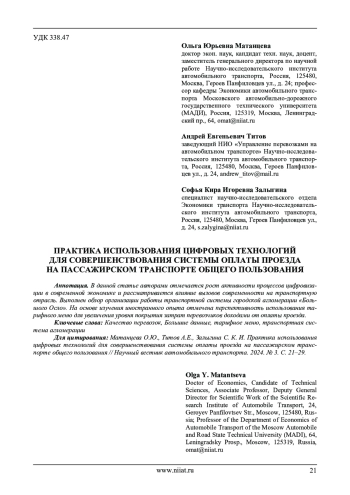Транспортные услуги обладают большой социальной значимостью. Характерной особенностью современности является то, что пассажиры перестают довольствоваться транспортом как средством движения между несколькими пунктами, предъявляя возросшие требования к качеству перевозки. Трансформация предпочтений пассажиров является причиной разнообразных изменений в транспортной отрасли: ее информатизации и цифровизации.