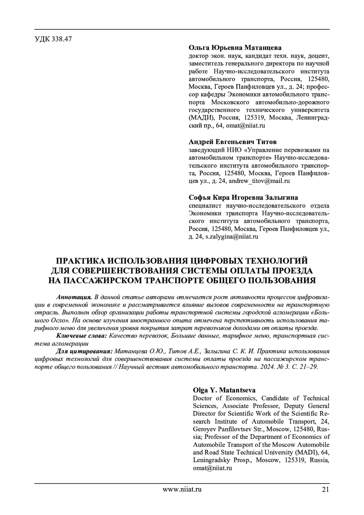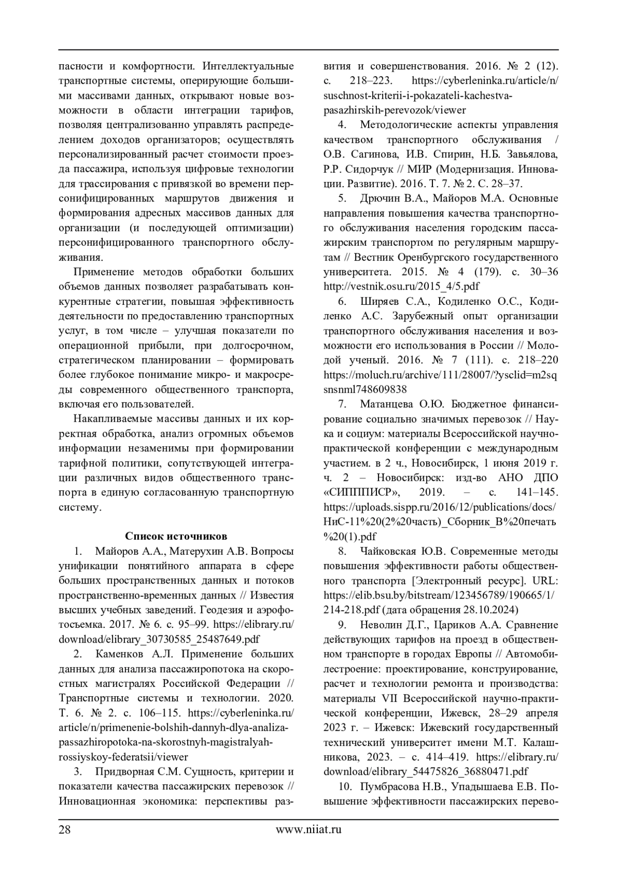 8. Чайковская Ю.В. Современные методы повышения эффективности работы общественного транспорта [Электронный ресурс]. URL: https://elib.bsu.by/bitstream/123456789/190665/1/ 214-218.pdf (дата обрацения 28.10.2024)