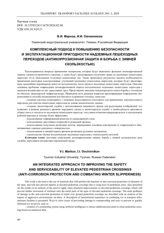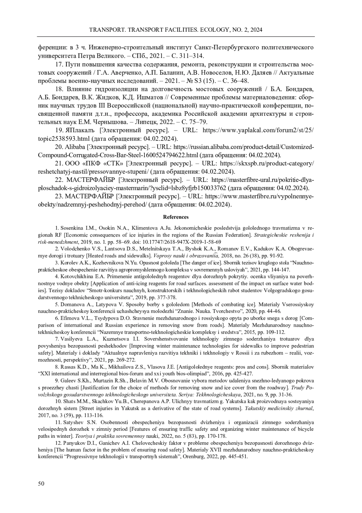 7. Васильева, Л.А. Совершенствование технологий зимнего содержания тротуаров для повышения безопасности пешеходов / Л.А. Васильева, И.И. Кузнецова // Актуальные направления развития техники и технологий в России и за рубежом - реалии, возможности, перспективы: материалы и доклады. - 2021. - С. 269-272. EDN: COWKGA