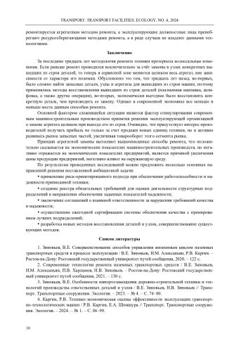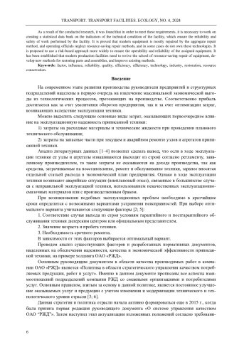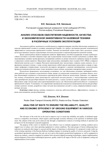 Актуальность работы заключается в необходимости совершенствования способов обеспечения надежности и качества приписанной техники в условиях конкурентной борьбы, что требует достижения высокой экономической эффективности эксплуатации приписанной техники. Решение поставленной задачи может быть достигнуто только путем всестороннего анализа существующих методов эксплуатации и перспектив развития наземной техники Целью данной работы является выявление наиболее эффективных способов поддержания техники в работоспособном состоянии и способов снижения затрат при осуществлении эксплуатации техники в различных условиях. Проанализированы основные группы факторов, оказывающих влияние на данные показатели, проведена оценка их влияния и определена степень важности. Предложено шире использовать имеющийся опыт холдинга ОАО «РЖД» в вопросах обеспечения качества услуг и товаров. Используя накопленный опыт эксплуатации, ставилась задача доказать, что современную наземную технику, а также технику практически любой отрасли невозможно представить в отрыве от передовых (цифровых) измерительных технологий, регулярного внедрения и освоения инновационных технологических процессов, контроля качества на всех этапах жизненного цикла техники, испытания и внедрения новых моделей. В результате проведенного исследования установлено, что для обеспечения указанных требований необходимо работать над созданием статистического банка данных по показателям технического состояния объекта, которые обеспечивают надежность и безопасность производства работ объектом эксплуатации. Доказано, что современная техника в большинстве своем ремонтируется агрегатным методом ремонта, а эксплуатирующие должностные лица пренебрегают ресурсосберегающими методами ремонта, а в ряде случаев не владеют данными технологиями. Предложено шире использовать риск-ориентированный подход для обеспечения работоспособности и надежности приписанной техники. Установлено, что современные производства нуждаются в возрождении школы ресурсосберегающего ремонта техники, разработке новых методов восстановления деталей и узлов, совершенствовании существующих методов.