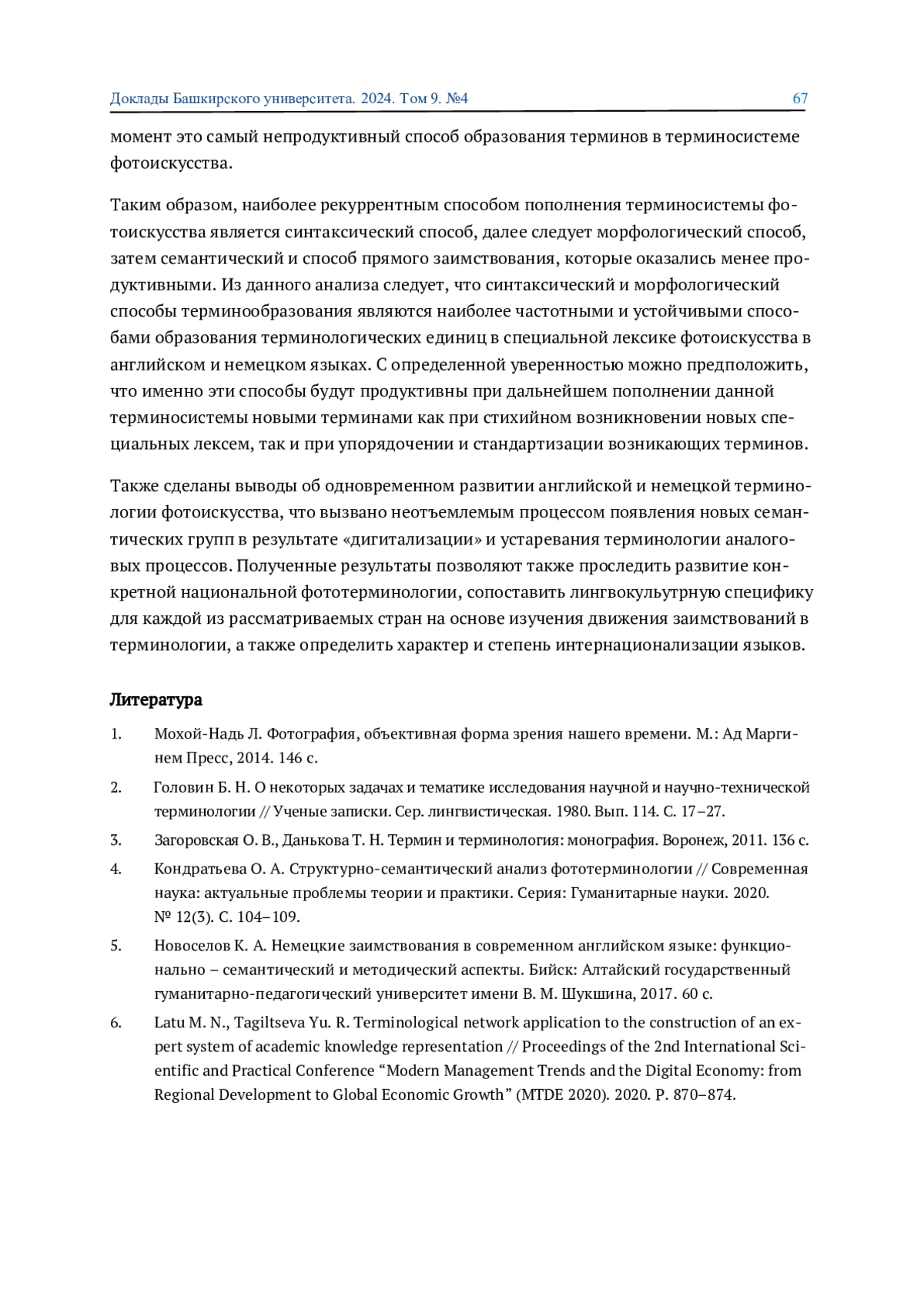 4. Кондратьева О. А. Структурно-семантический анализ фототерминологии // Современная наука: актуальные проблемы теории и практики. Серия: Гуманитарные науки. 2020. № 12(3). С. 104-109. EDN: XKTQHA