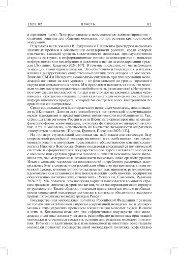 9. Устинкин С.В., Самсонов А.И., Рудакова Е.К. 2024. Самооценка студенческой молодежью материального положения как фактор политической социализации и отношения к власти (на примере Нижнего Новгорода). - Вестник Пермского университета. Т. 18. № 2. С. 73-86. DOI: 10.17072/2218-1067-2024-2-73-86 EDN: CCWCTO