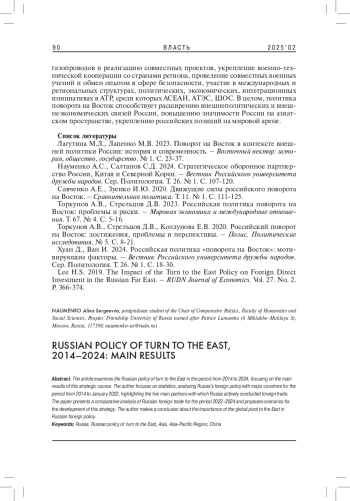 5. Торкунов А.В., Стрельцов Д.В., Колдунова Е.В. 2020. Российский поворот на Восток: достижения, проблемы и перспективы. - Полис. Политические исследования. № 5. С. 8-21. EDN: DBKKFU