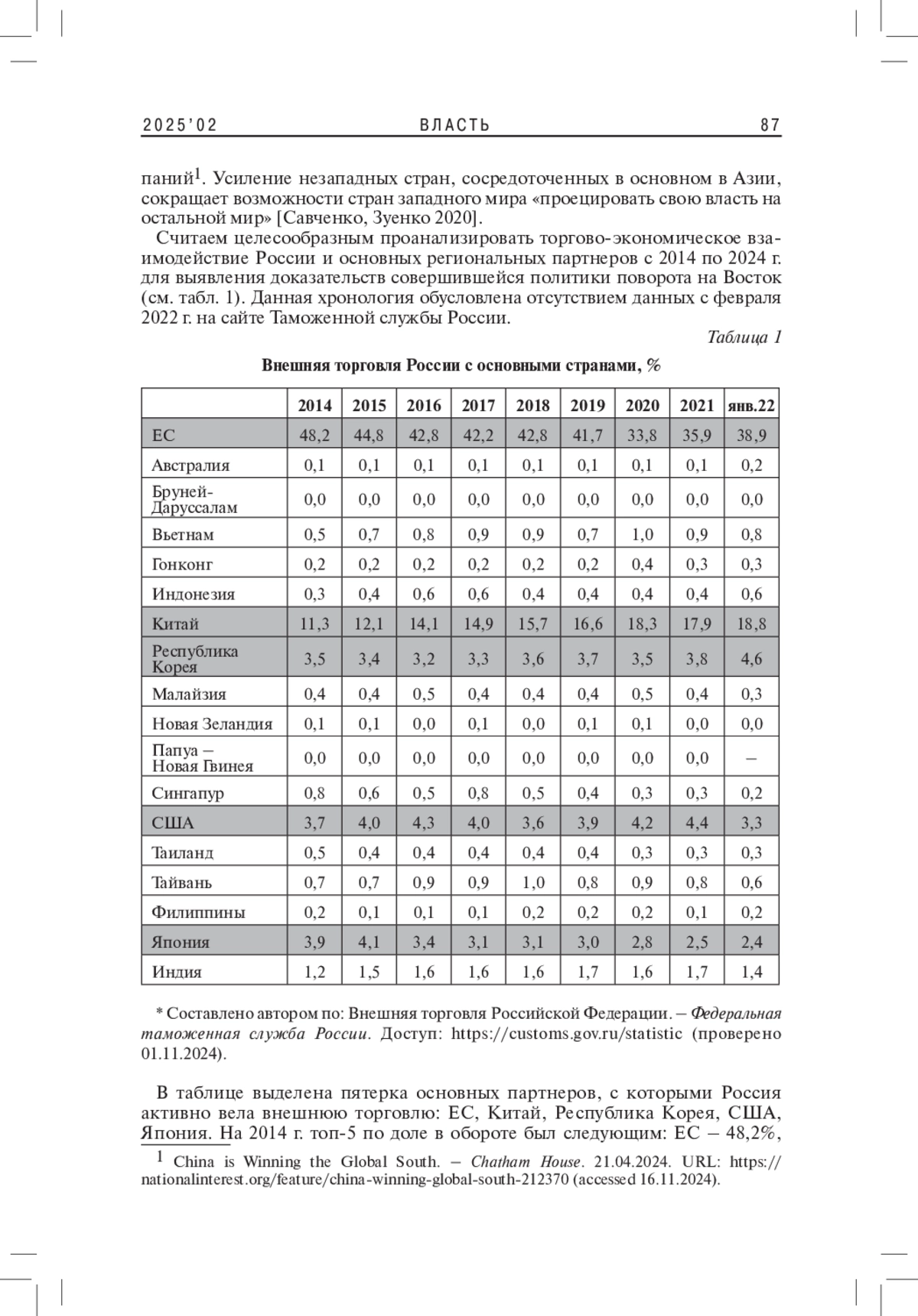 3. Савченко А.Е., Зуенко И.Ю. 2020. Движущие силы российского поворота на Восток. - Сравнительная политика. Т. 11. № 1. С. 111-125. EDN: XLYUWZ