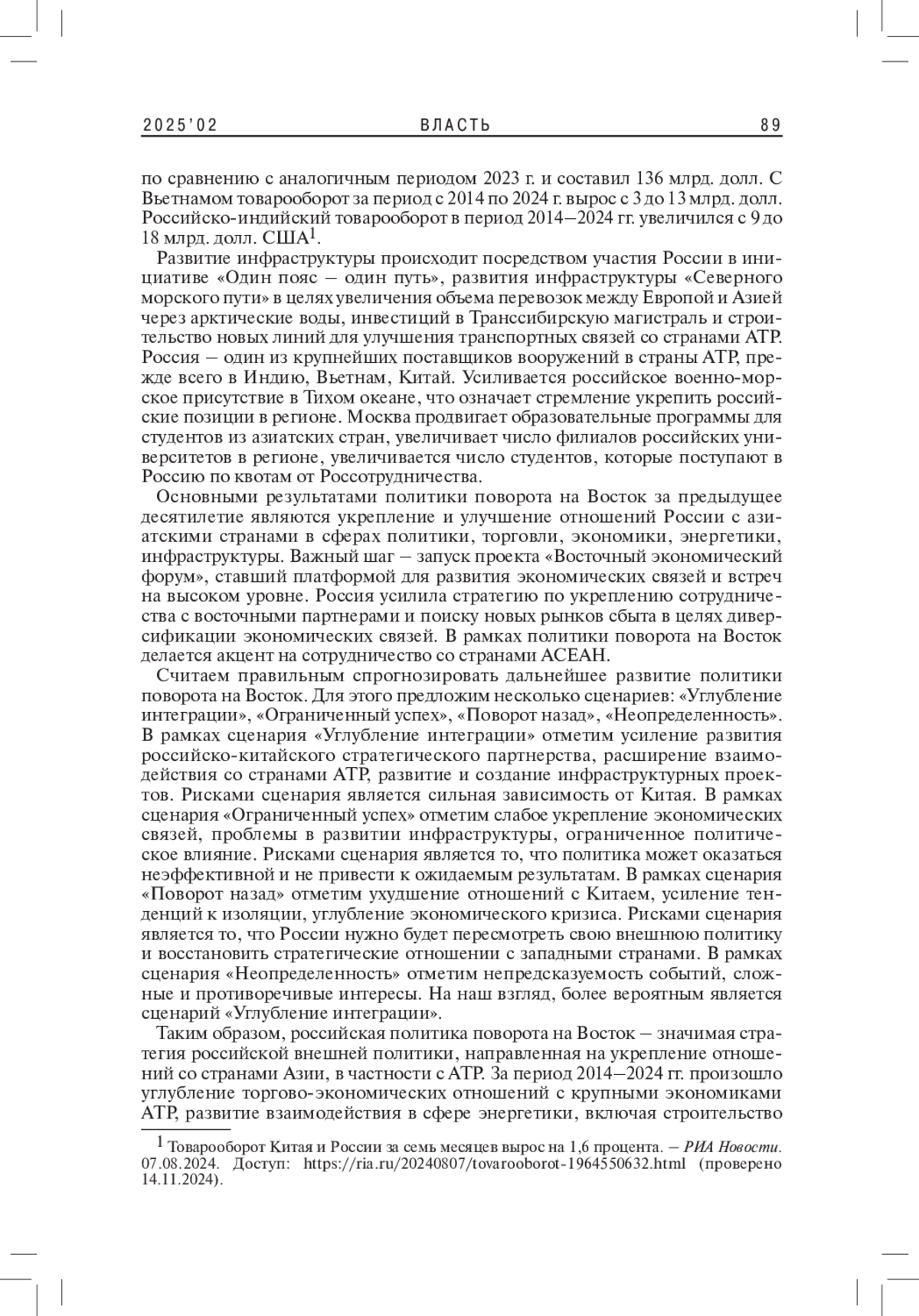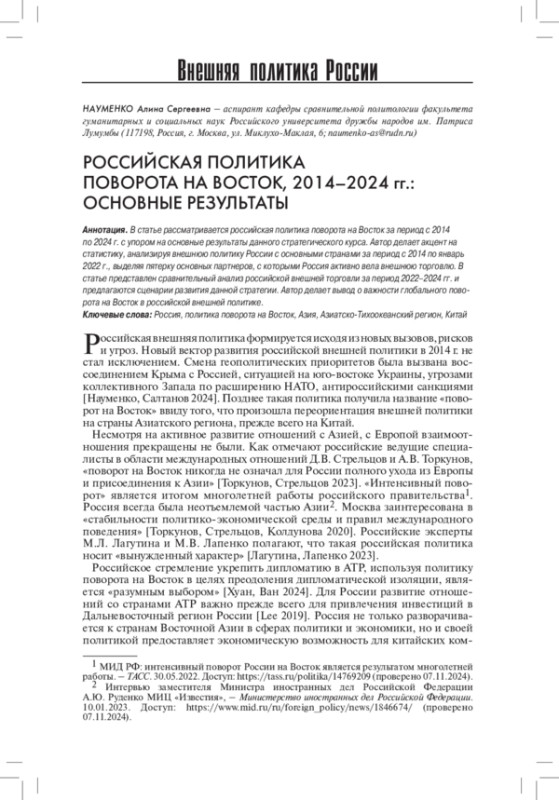 4. Торкунов А.В., Стрельцов Д.В. 2023. Российская политика поворота на Восток: проблемы и риски. - Мировая экономика и международные отношения. Т. 67. № 4. С. 5-16. EDN: QBQAWC