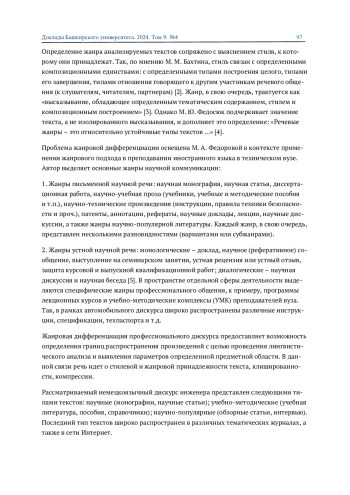 5. 	Федорова М. А. Жанровый подход к развитию культуры научной речи // Омский научный вестник. 2014. №3(129). С. 101-104. EDN: TKZYKL