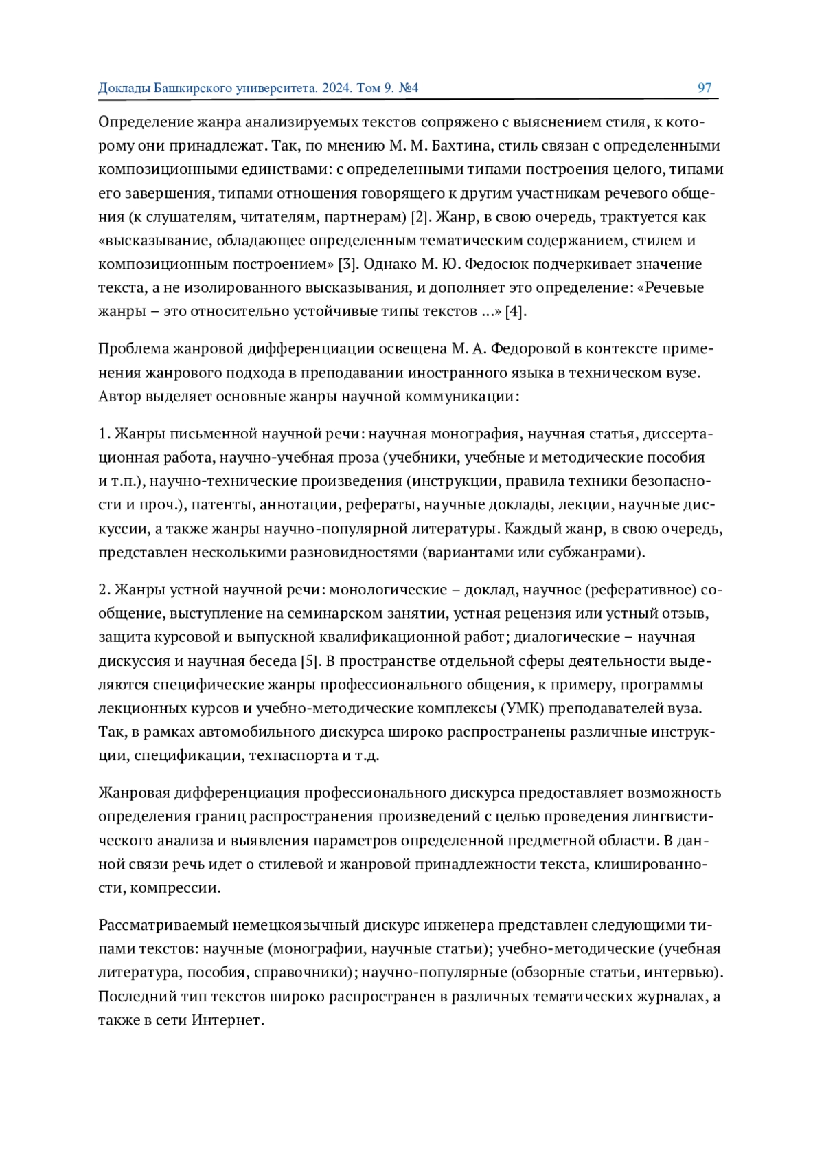 4. 	Федосюк М. Ю. Нерешенные вопросы теории речевых жанров // Вопросы языкознания. 1997. №5. С. 105-120.